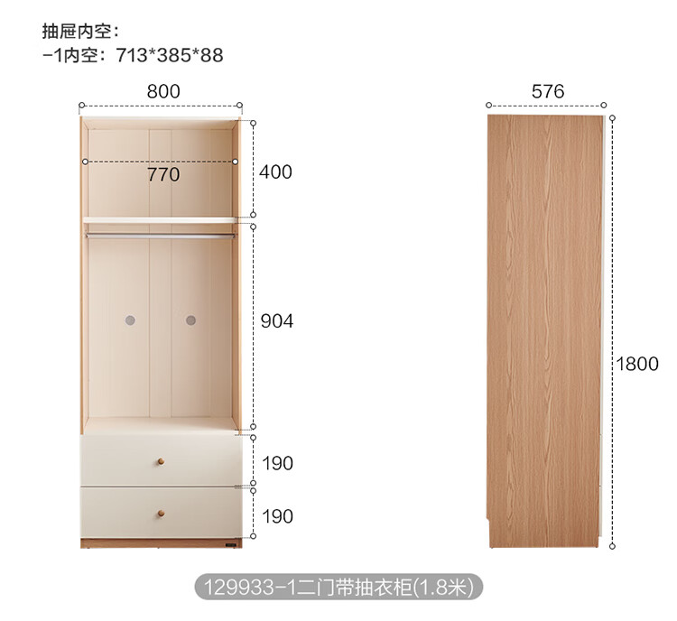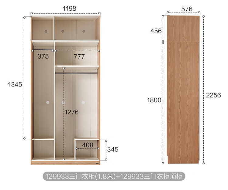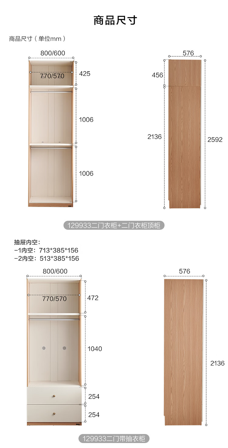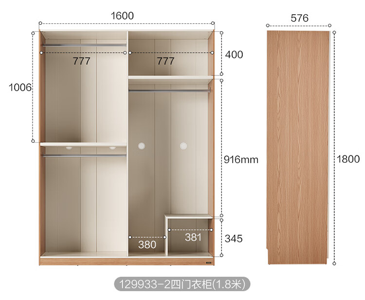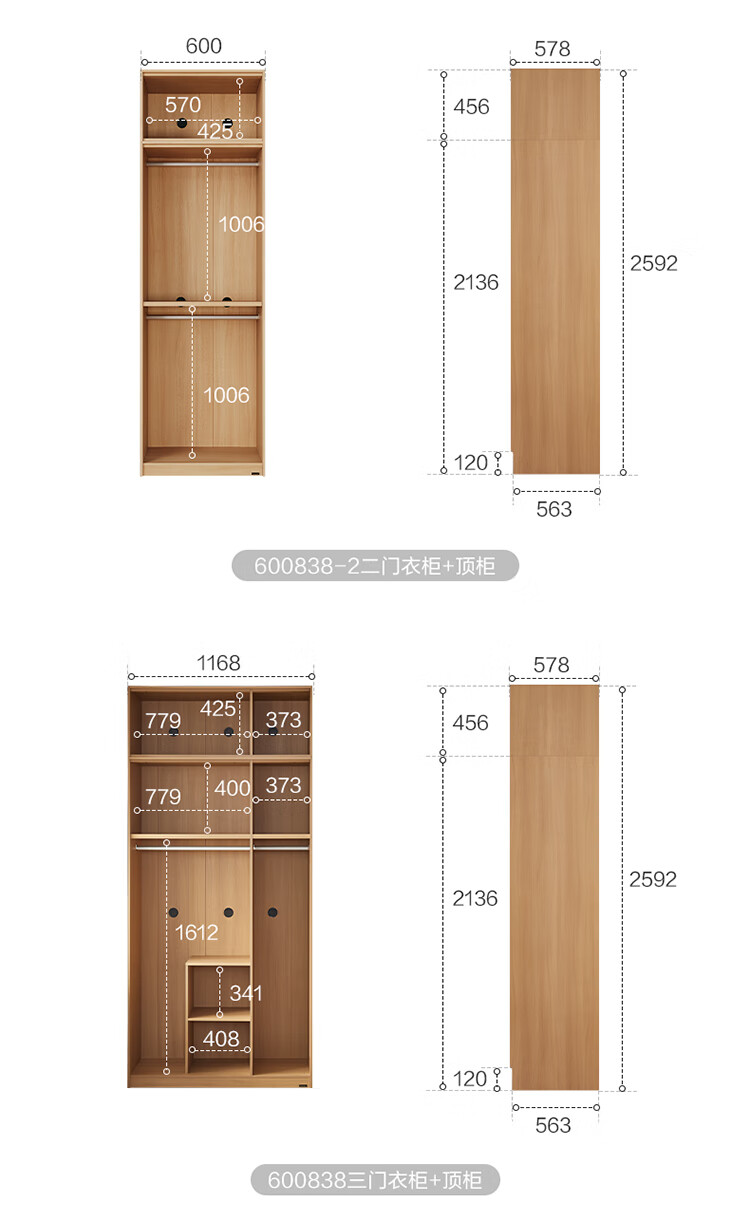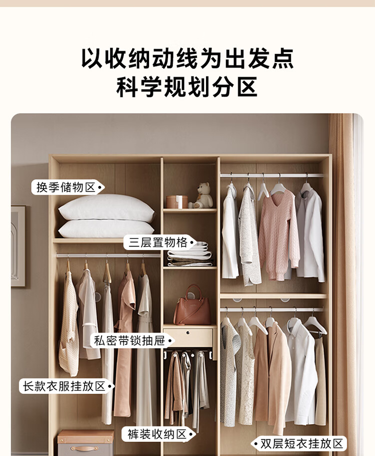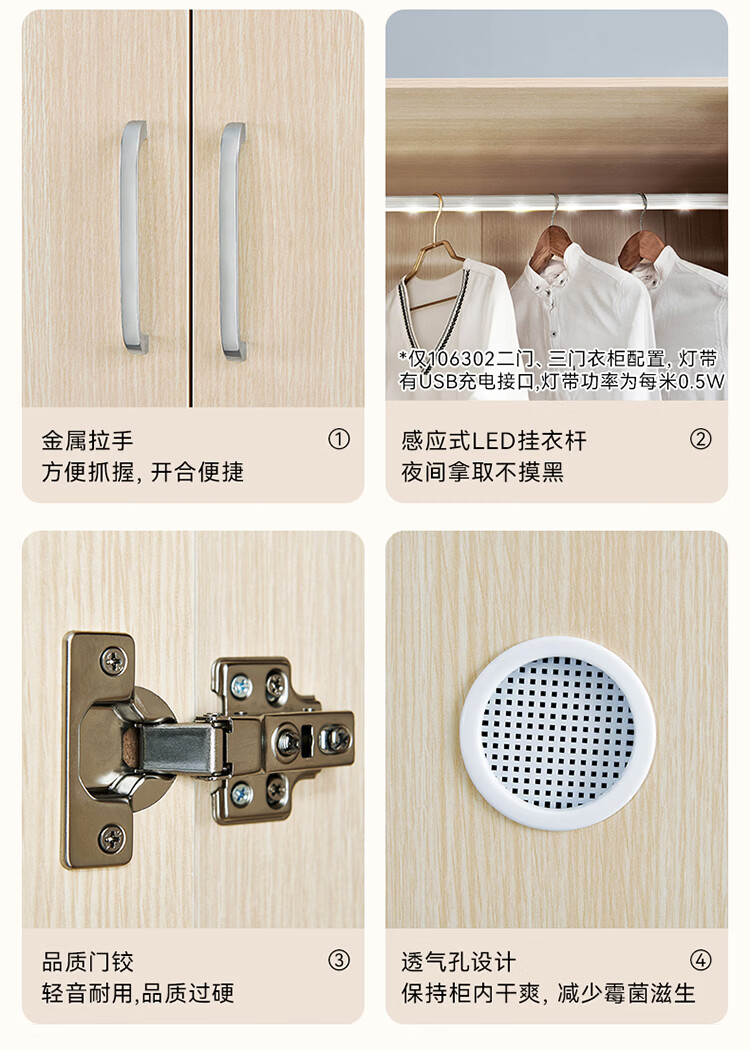Quanyou Home Finished Modern Simple Style Large Wardrobe Top Cabinet Combination Home Bedroom Furniture Cabinet Wardrobe White Oak Color 1.86m Five Door Wardrobe New Multi-Specifications Flexible Combination + Scientific Partitioned Storage