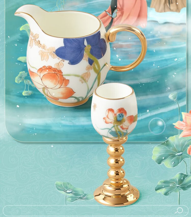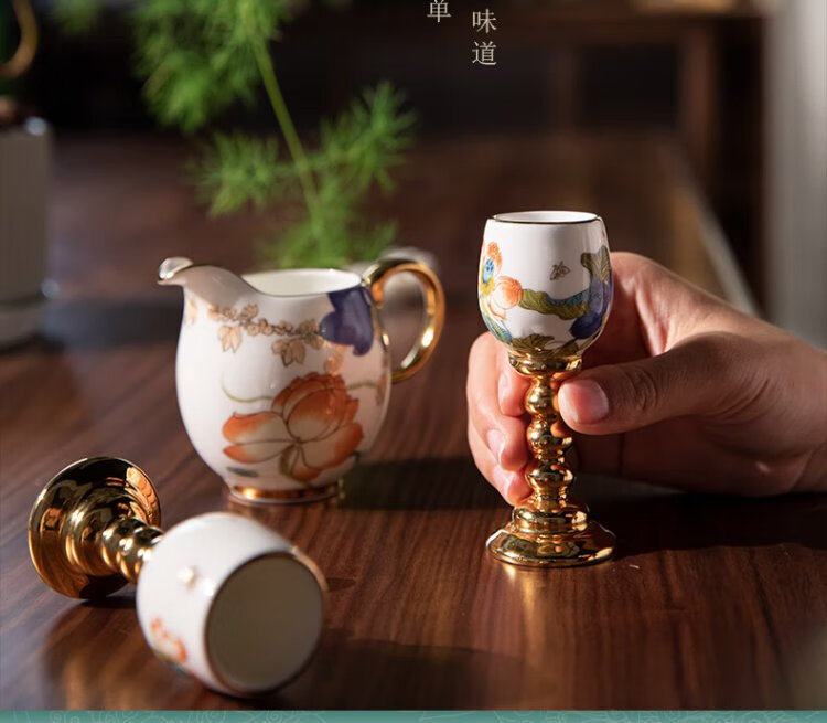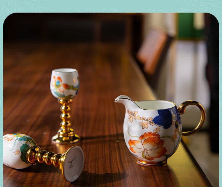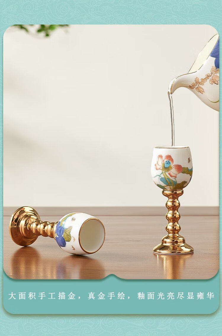 Yongfengyuan 3-head Happy Heming white wine glass and wine dispenser set Ceramic spirit glass goblet Happy Heming 3-head wine set