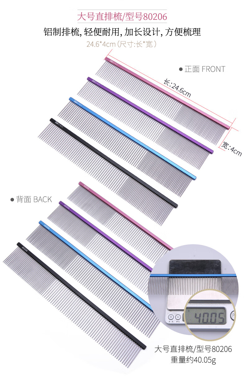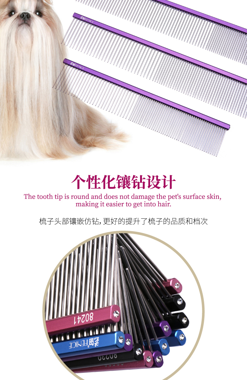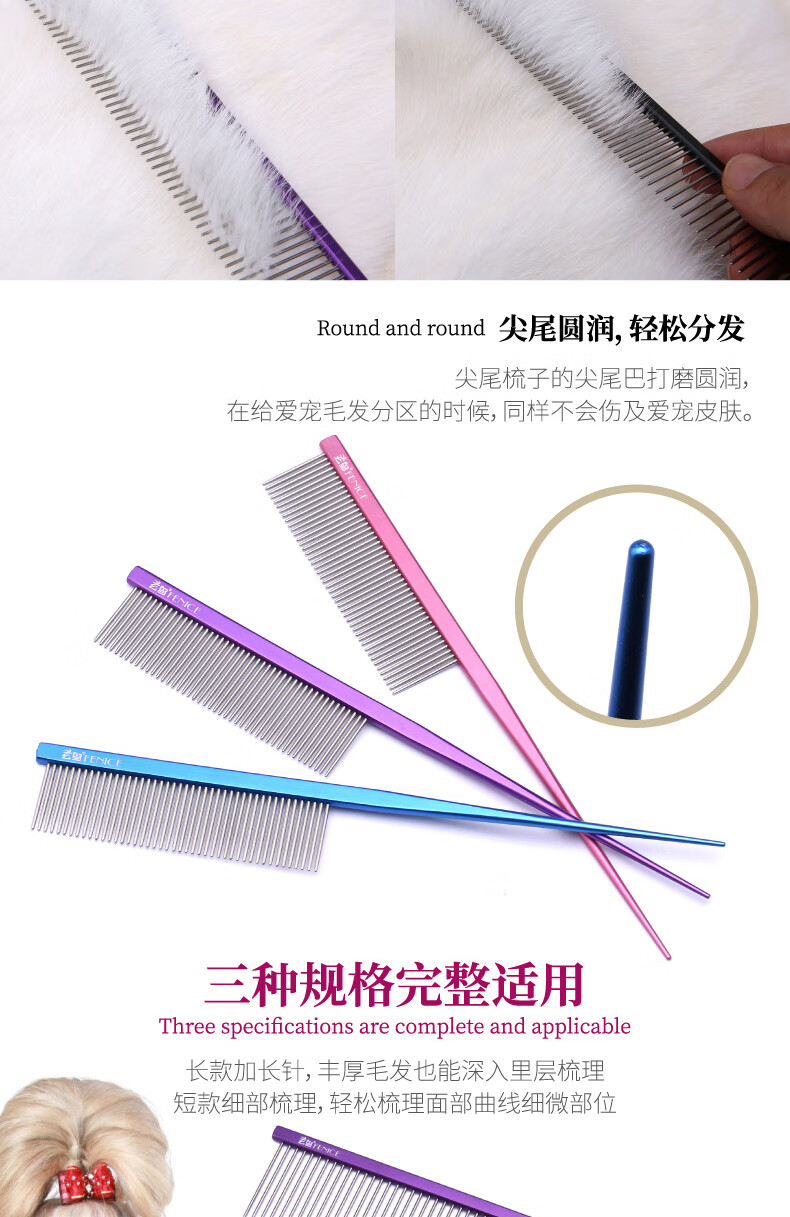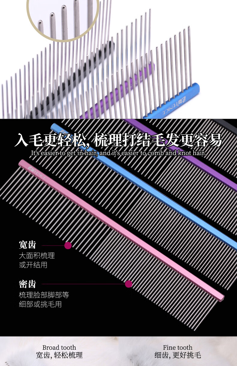 Xuanniao pet grooming straight comb aluminum row comb professional hair picking combing knot styling comb floating hair cat and dog pointed tail comb purple pointed tail comb (18.3x2.5cm)