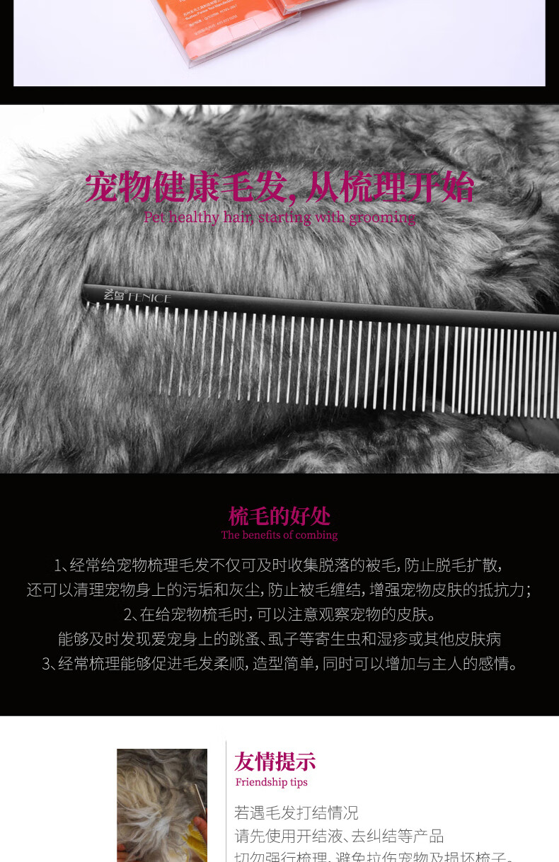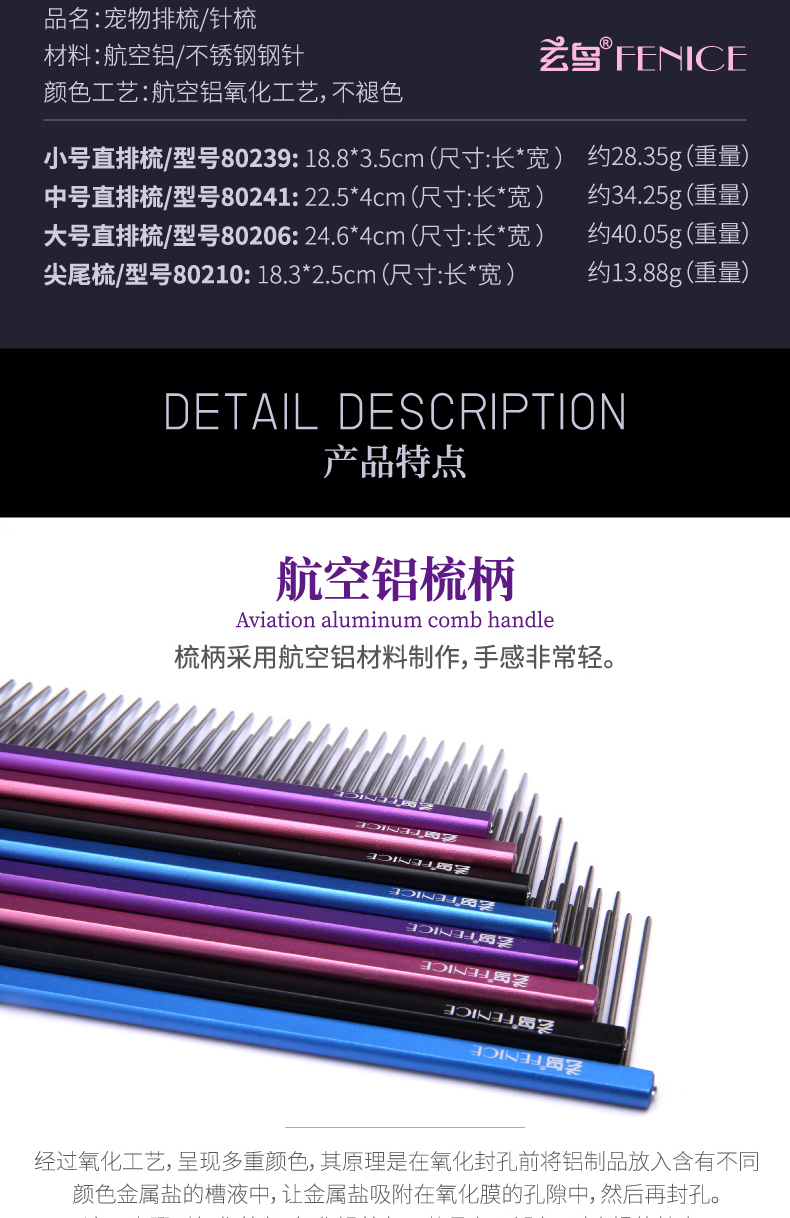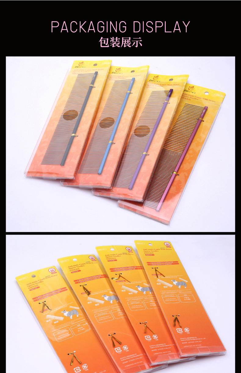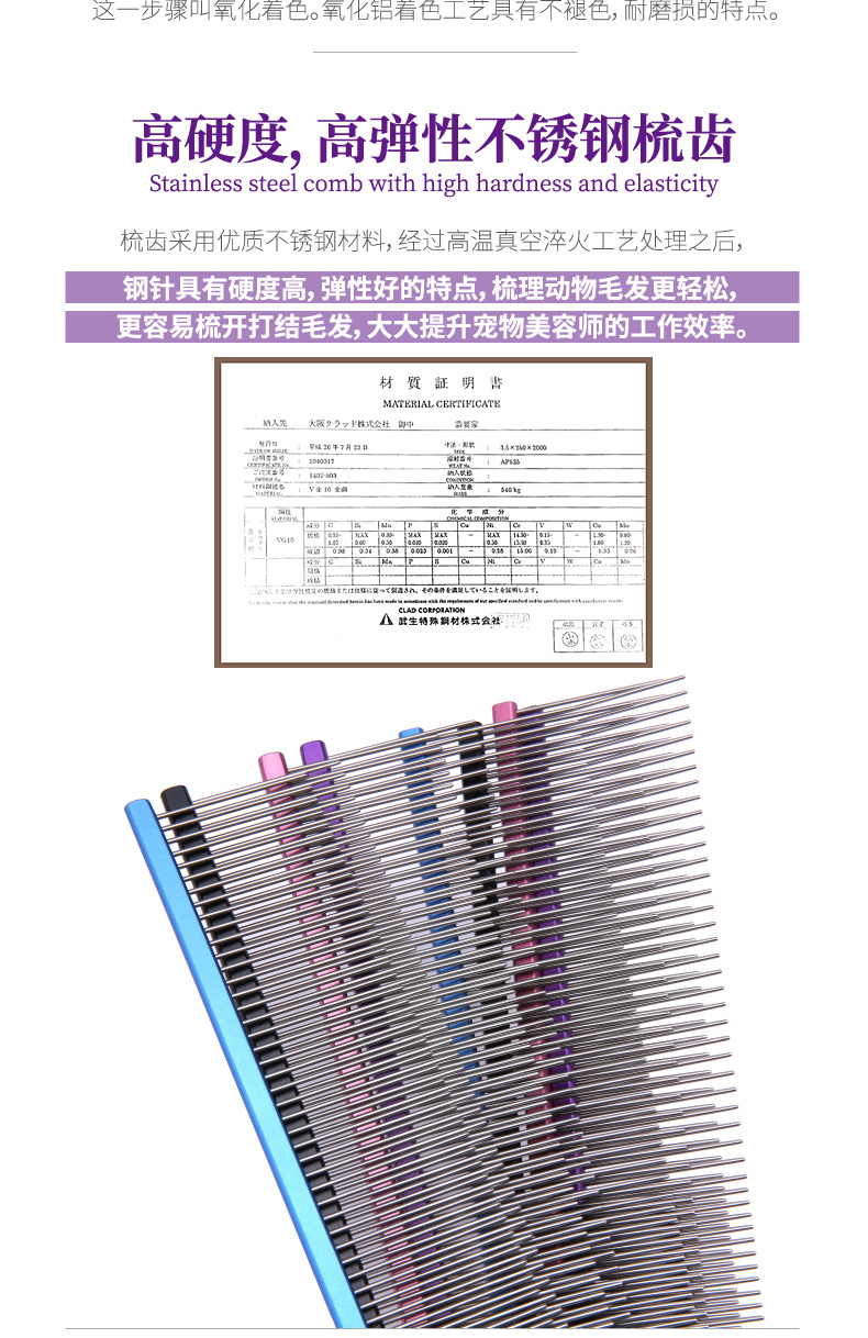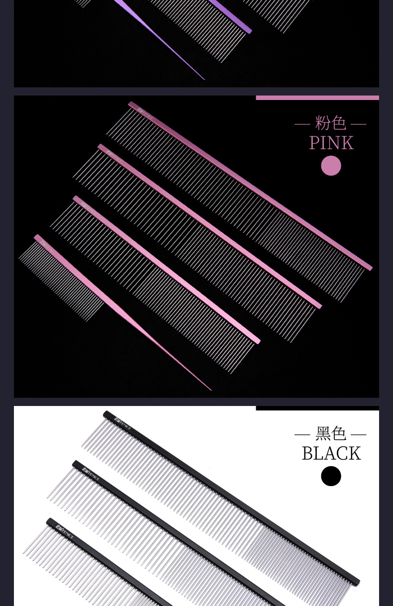 Xuanniao pet grooming straight comb aluminum row comb professional hair picking combing knot styling comb floating hair cat and dog pointed tail comb purple pointed tail comb (18.3x2.5cm)