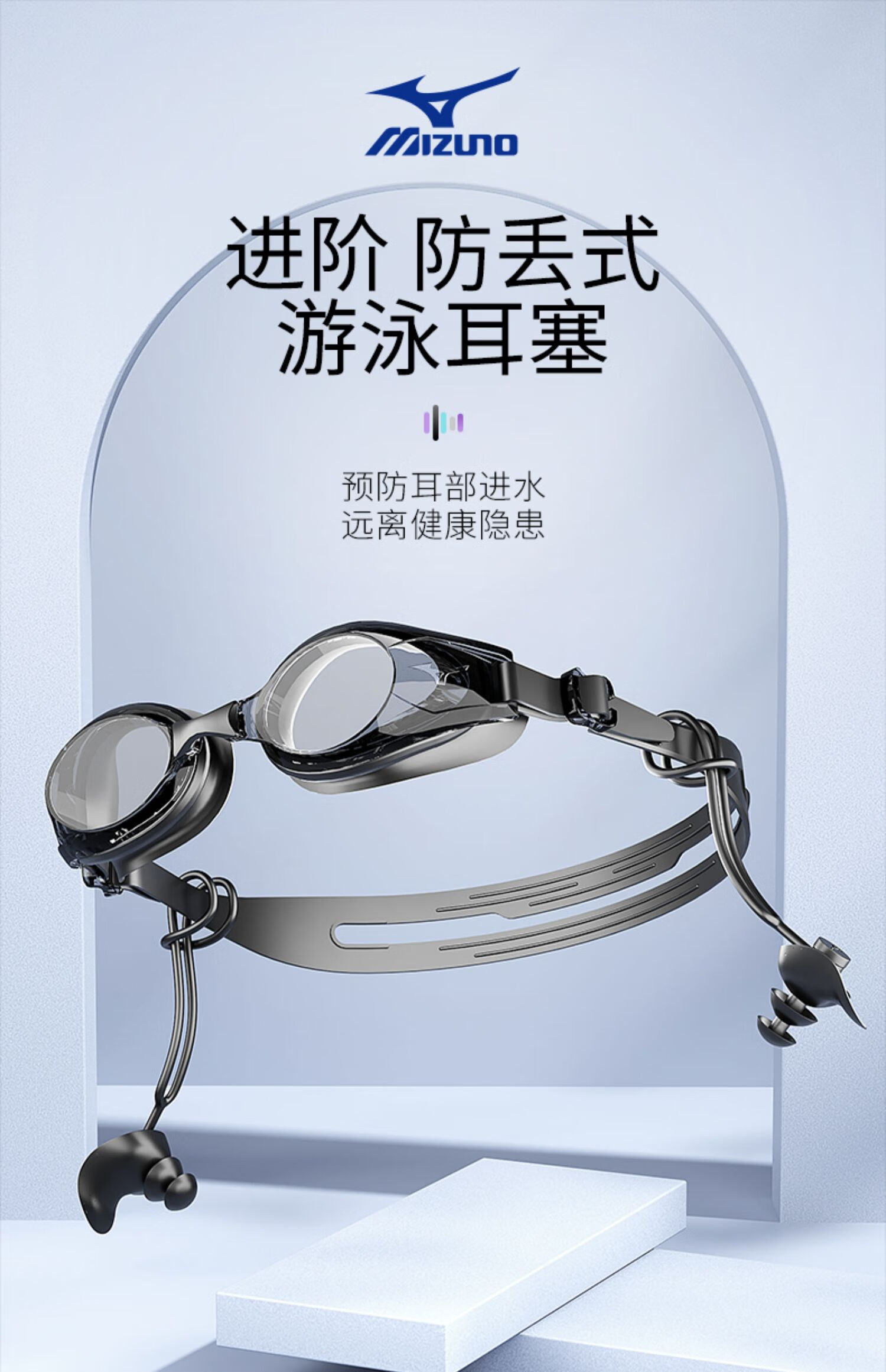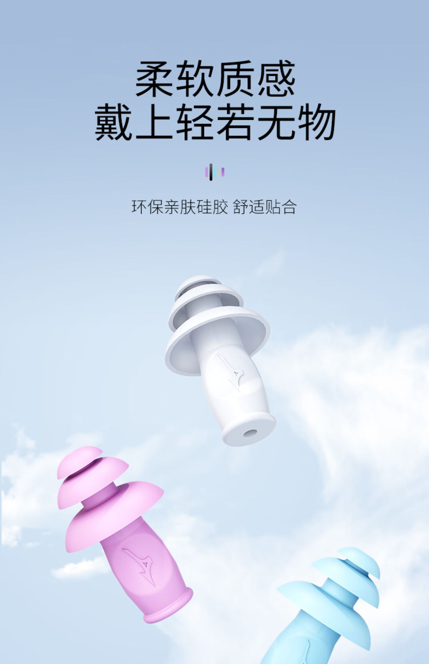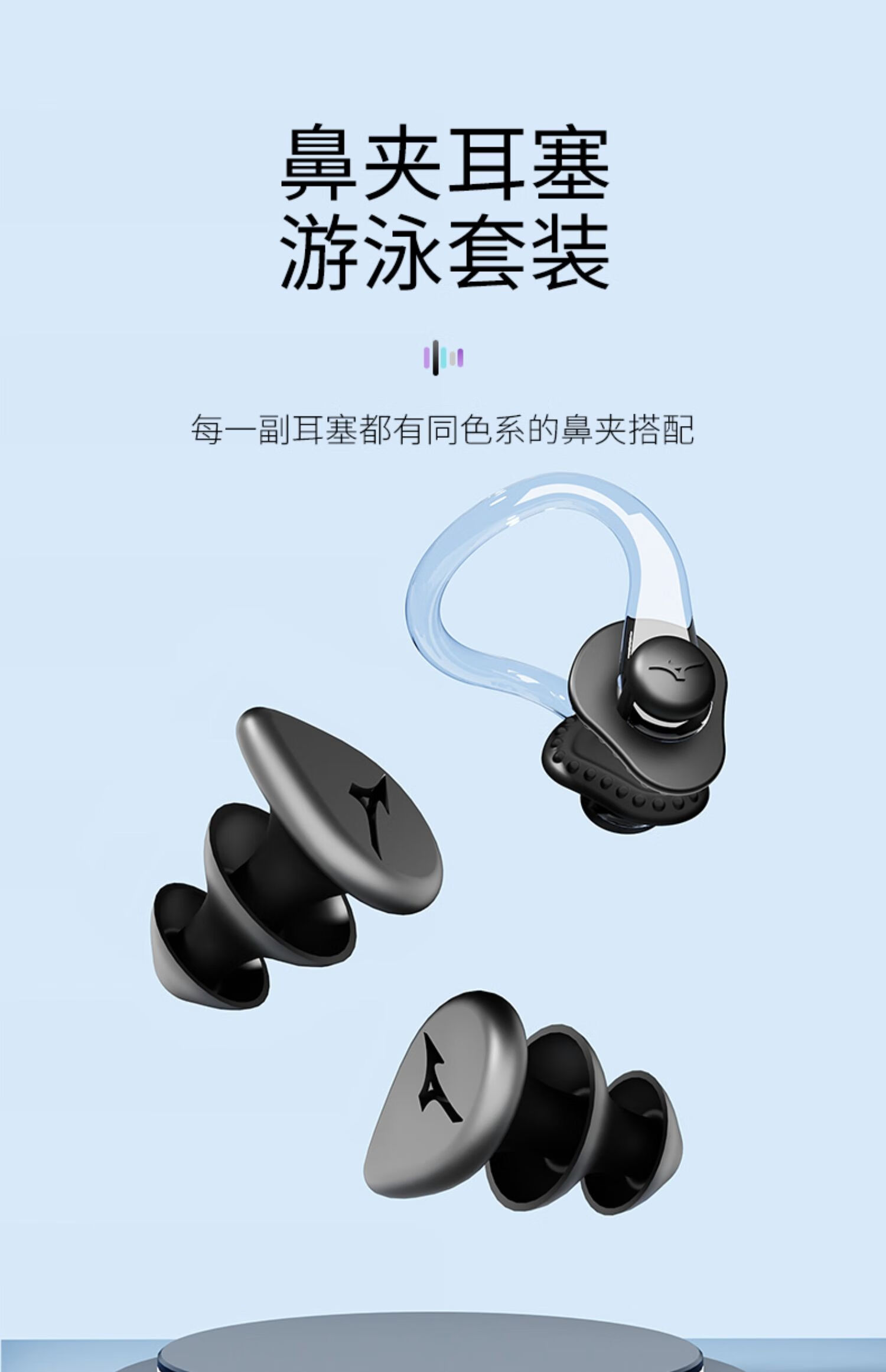 Mizuno (MIZUNO) swimming earplugs and nose clip set silicone waterproof non-soundproof otitis media professional adult and child bath anti-lost rope 2001-black lanyard anti-lost style