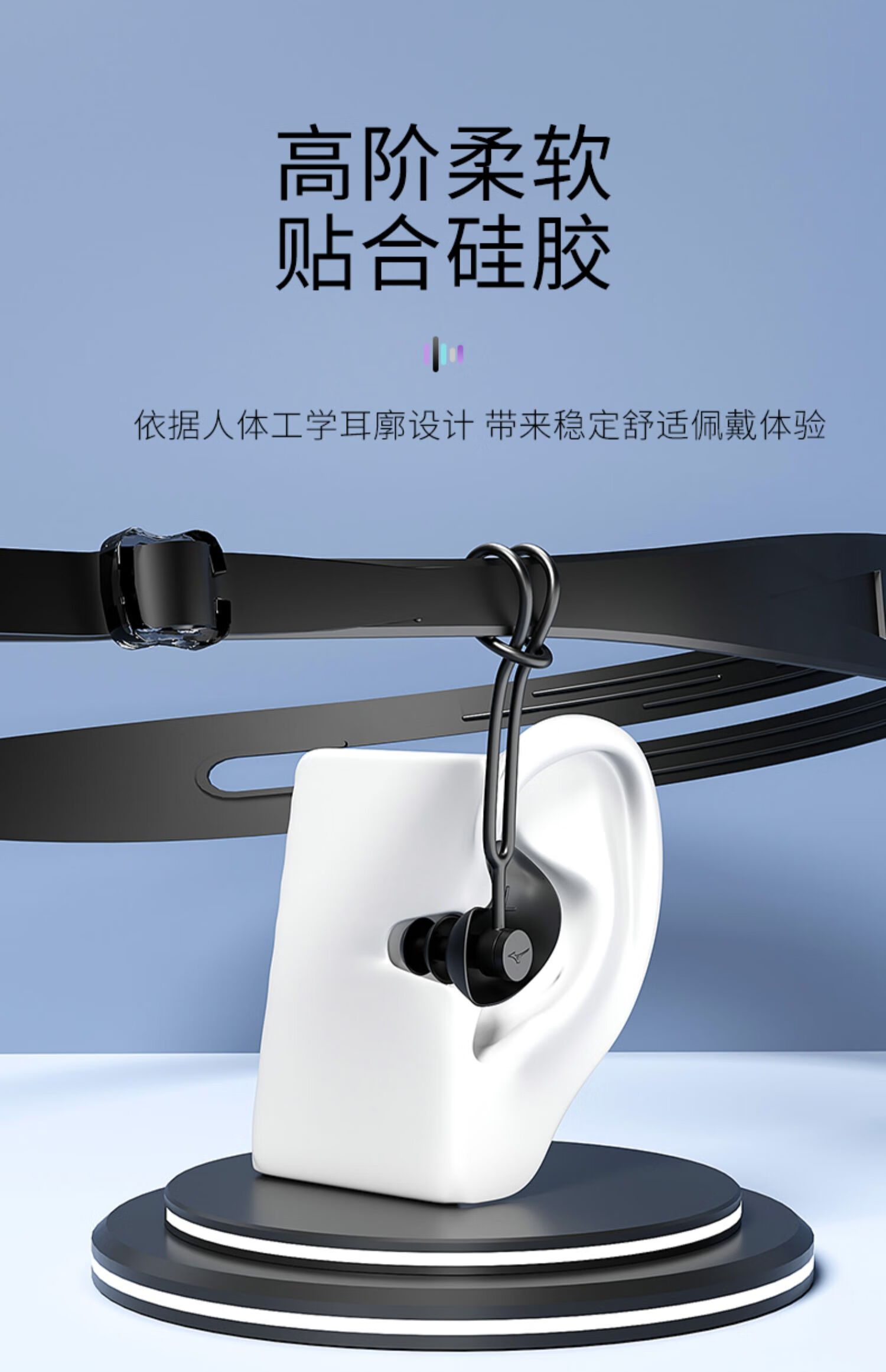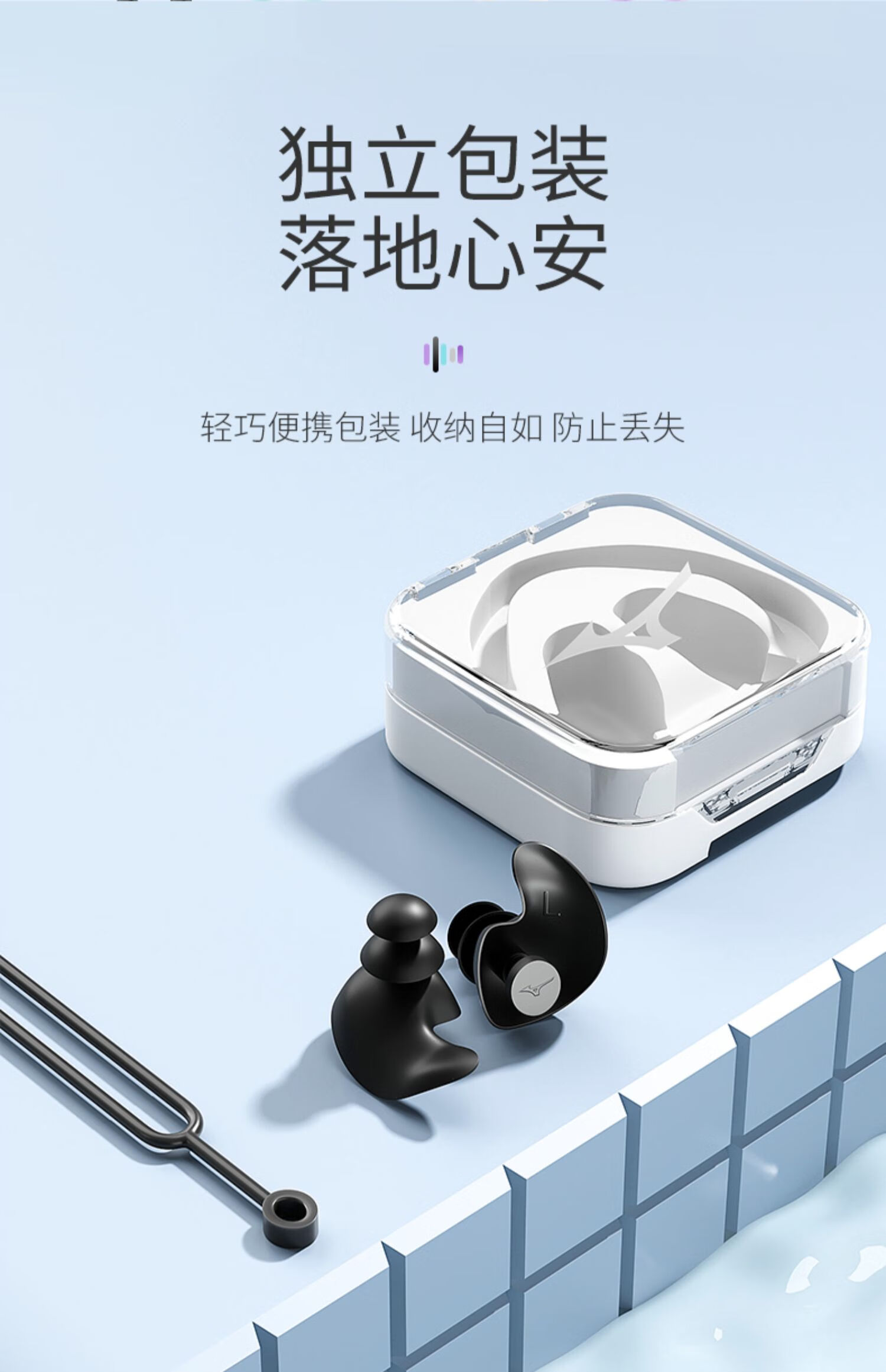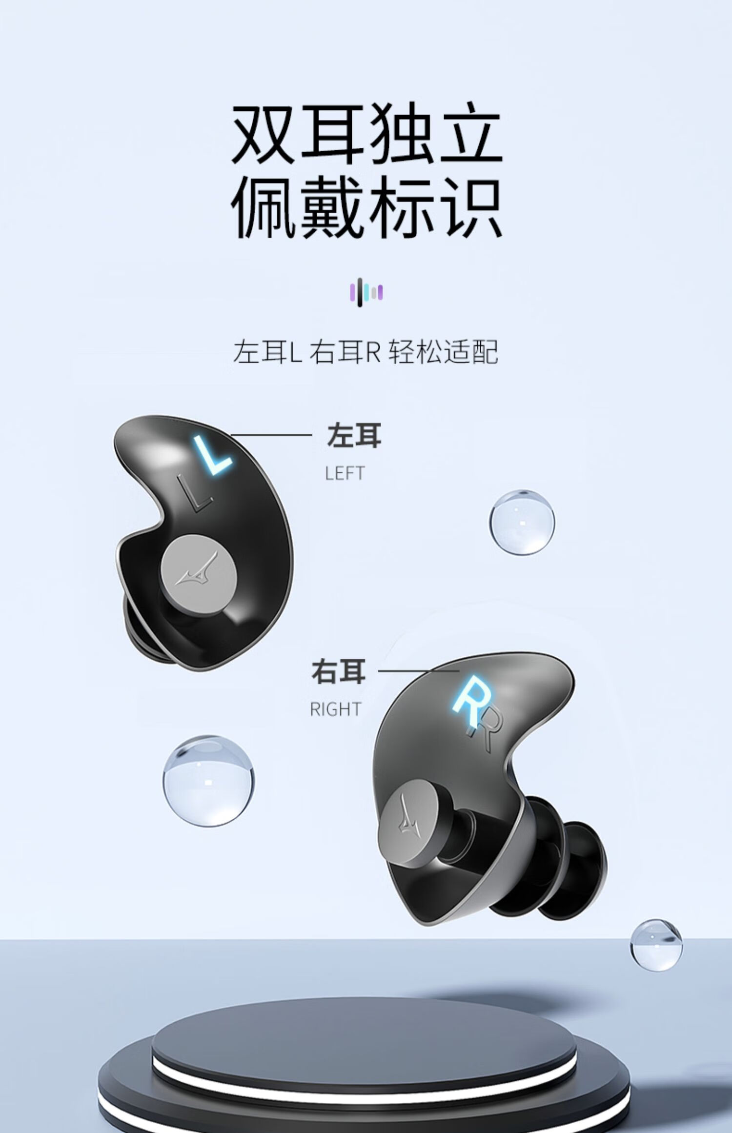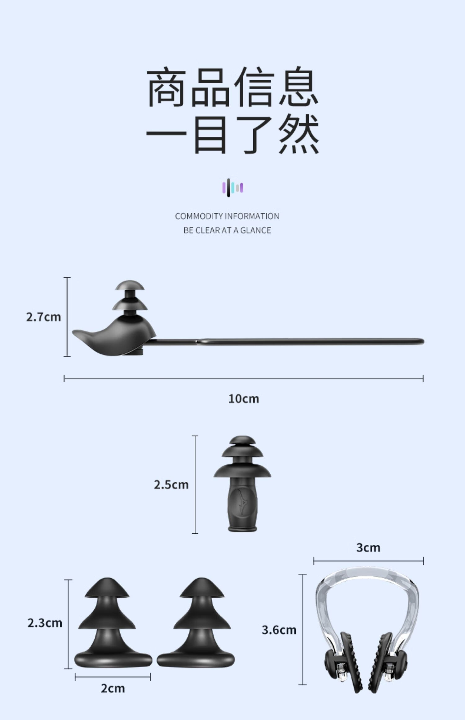 Mizuno (MIZUNO) swimming earplugs and nose clip set silicone waterproof non-soundproof otitis media professional adult and child bath anti-lost rope 2001-black lanyard anti-lost style