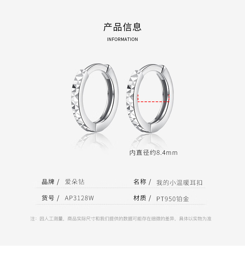 Aido Diamond Platinum Earrings for Women, pt950 Platinum Earrings, Simple and Fashionable Earrings for Wife, Weight 1.4-1.6g + Delivery Certificate