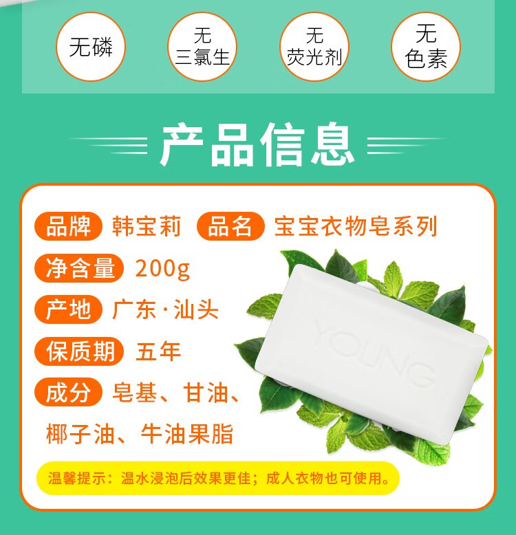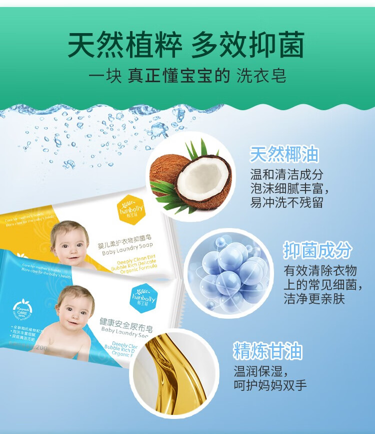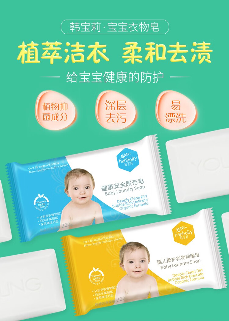 Han Baoli Baby Soft Care Clothing Soap Deep Cleansing Multi-Action Milk and Urine Stains Laundry Handmade Soap 200g Affordable Six Pack
