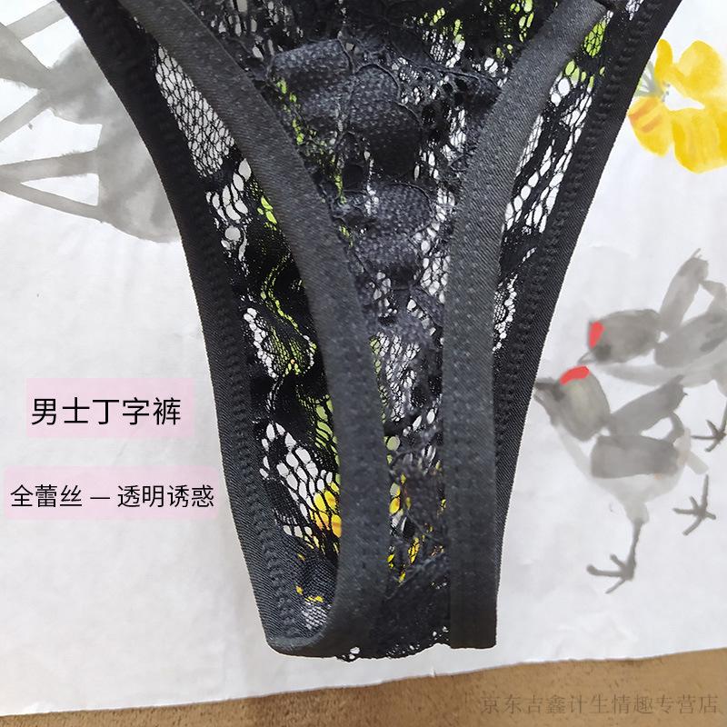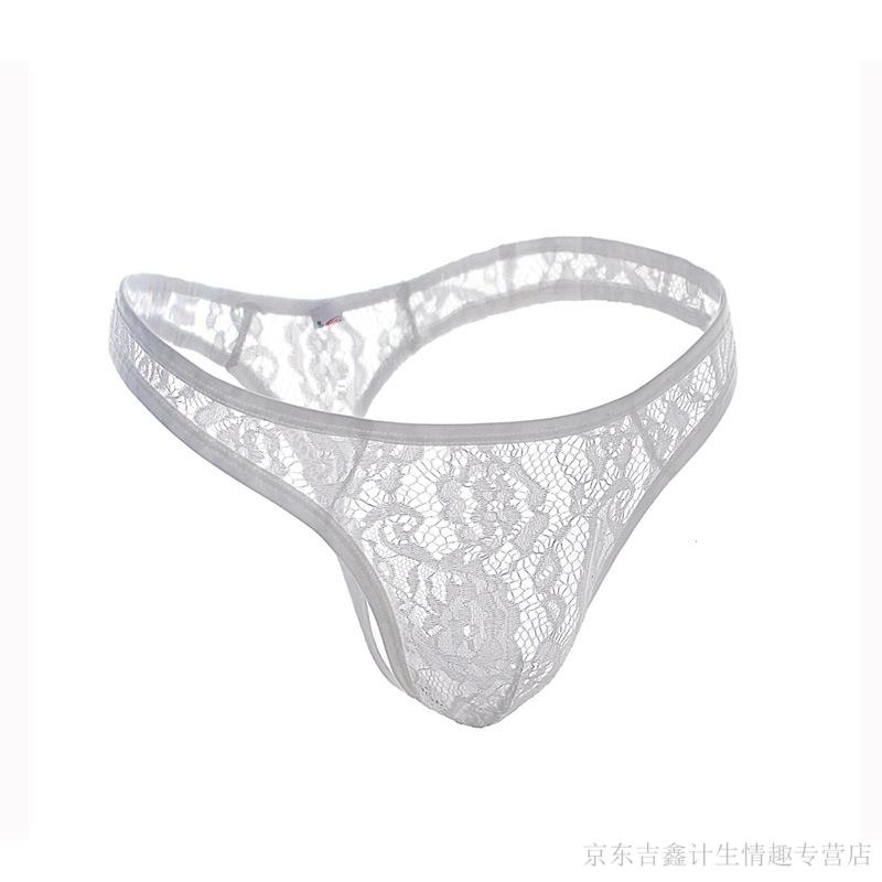 Adult men's sexy underwear, perverted lace transparent thong, thin sexy and interesting temptation T-pants, men's breathable large size couple's intercourse stimulation, no need to take off adult products SM white 4XL