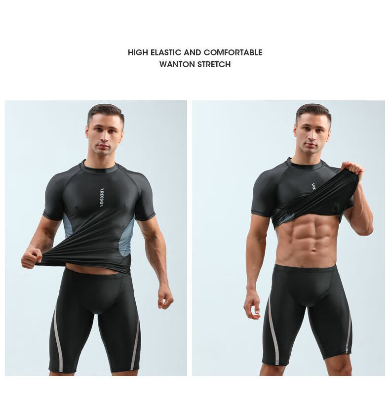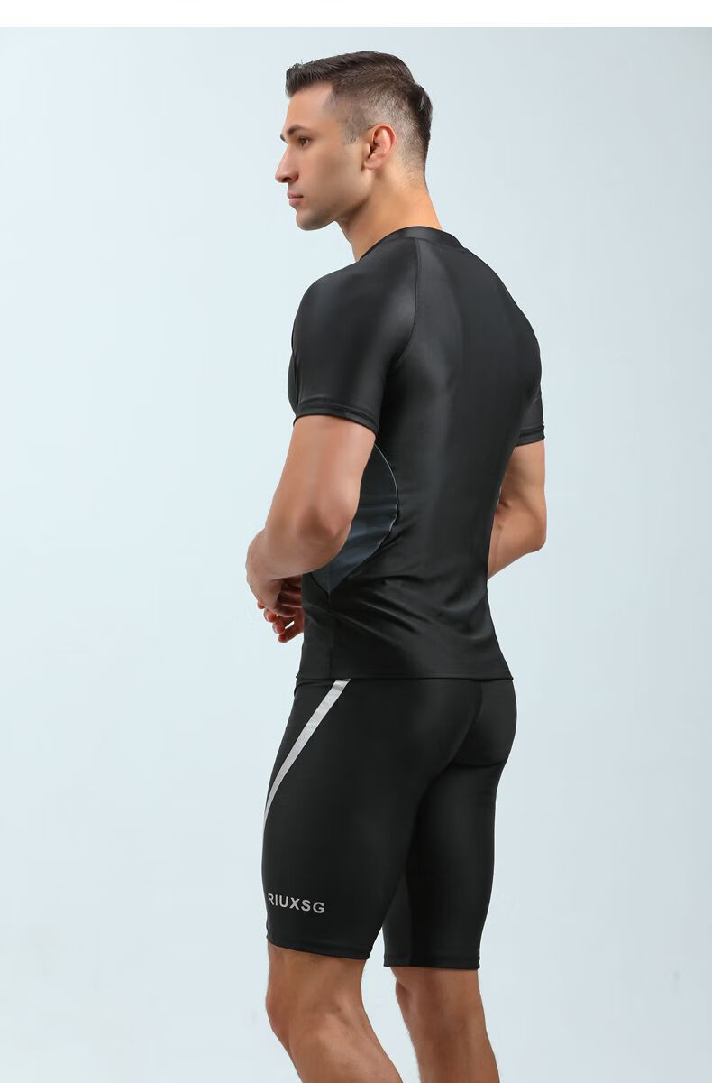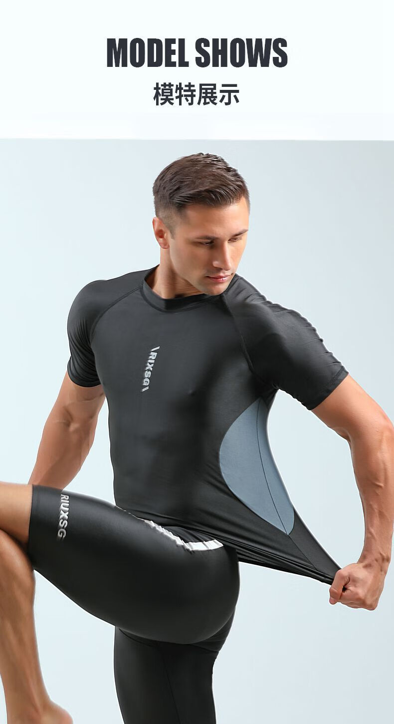 Qianyi Color's new swimsuit men's wetsuit one-piece pullover swimsuit short-sleeved five-quarter pants snorkeling suit swimming pool coach suit (swimsuit + swimming trunks) XL (120-150Jin Jin is equal to 0.5 kg)