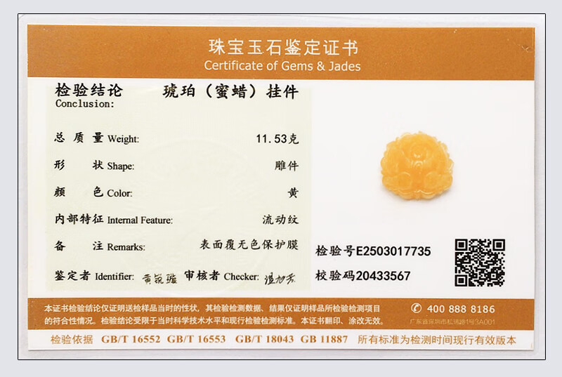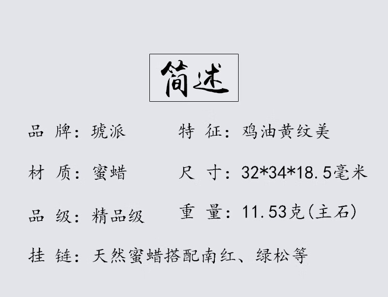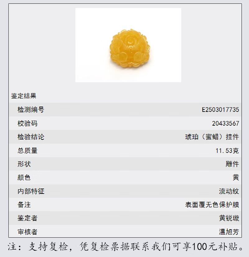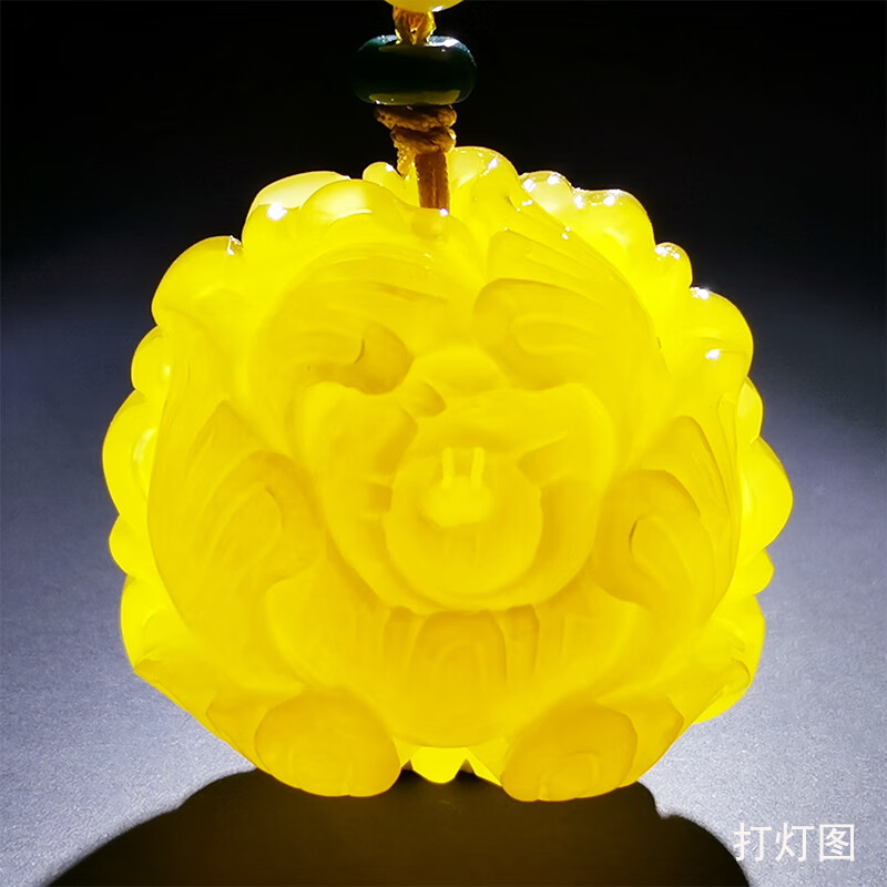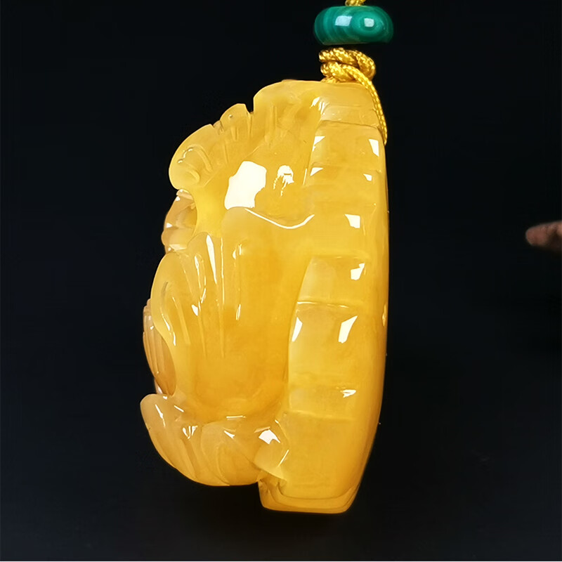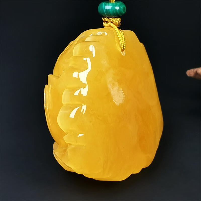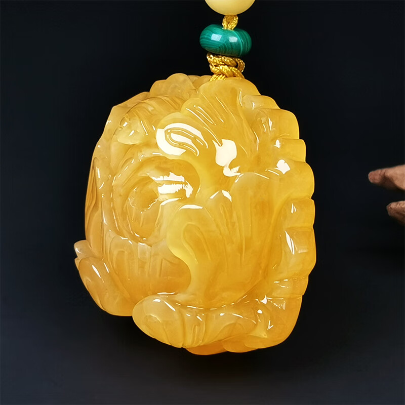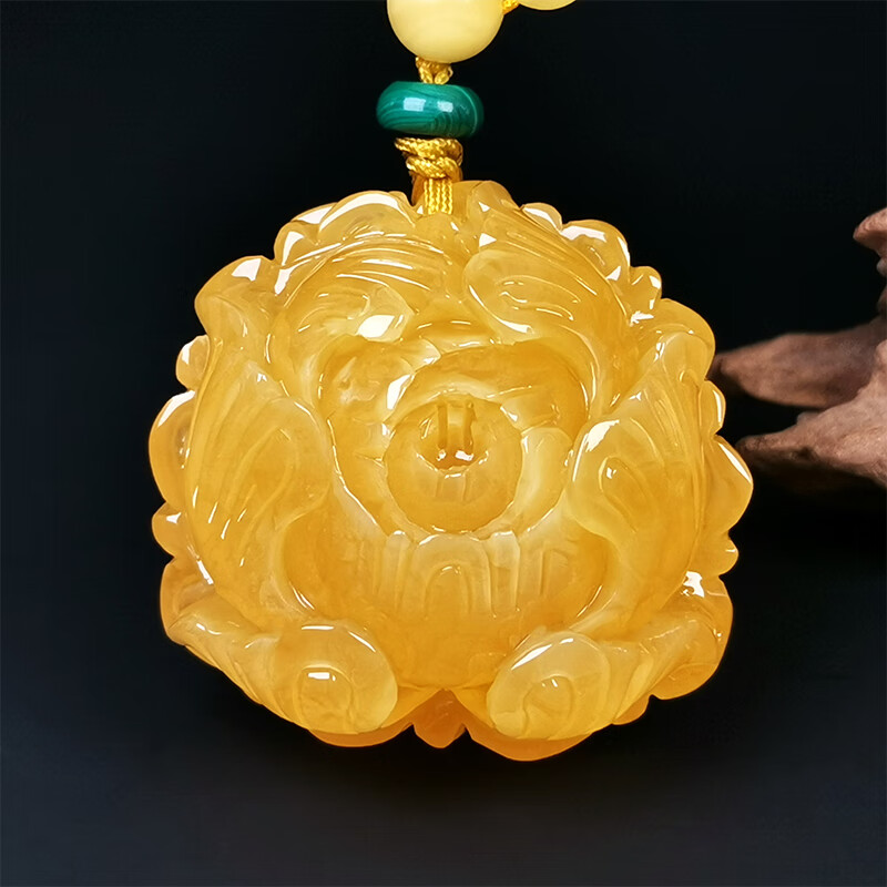 Hupai, one thing, one picture, one certificate, natural beeswax pendant, women's necklace, sweater chain, peony flower necklace, chicken fat yellow, pendant, 11.53g, 32*34*18.5mm