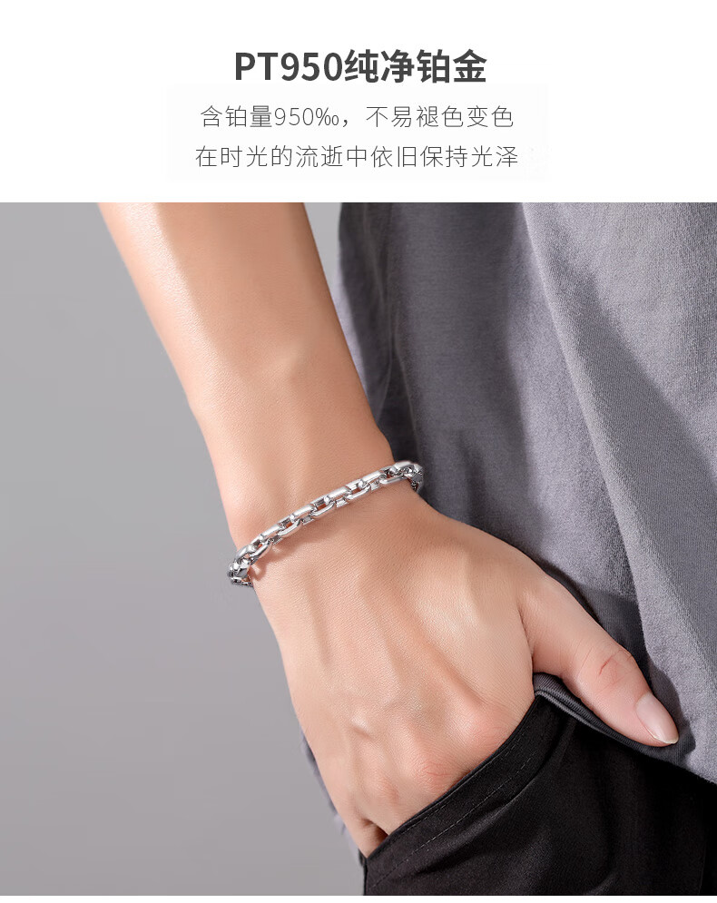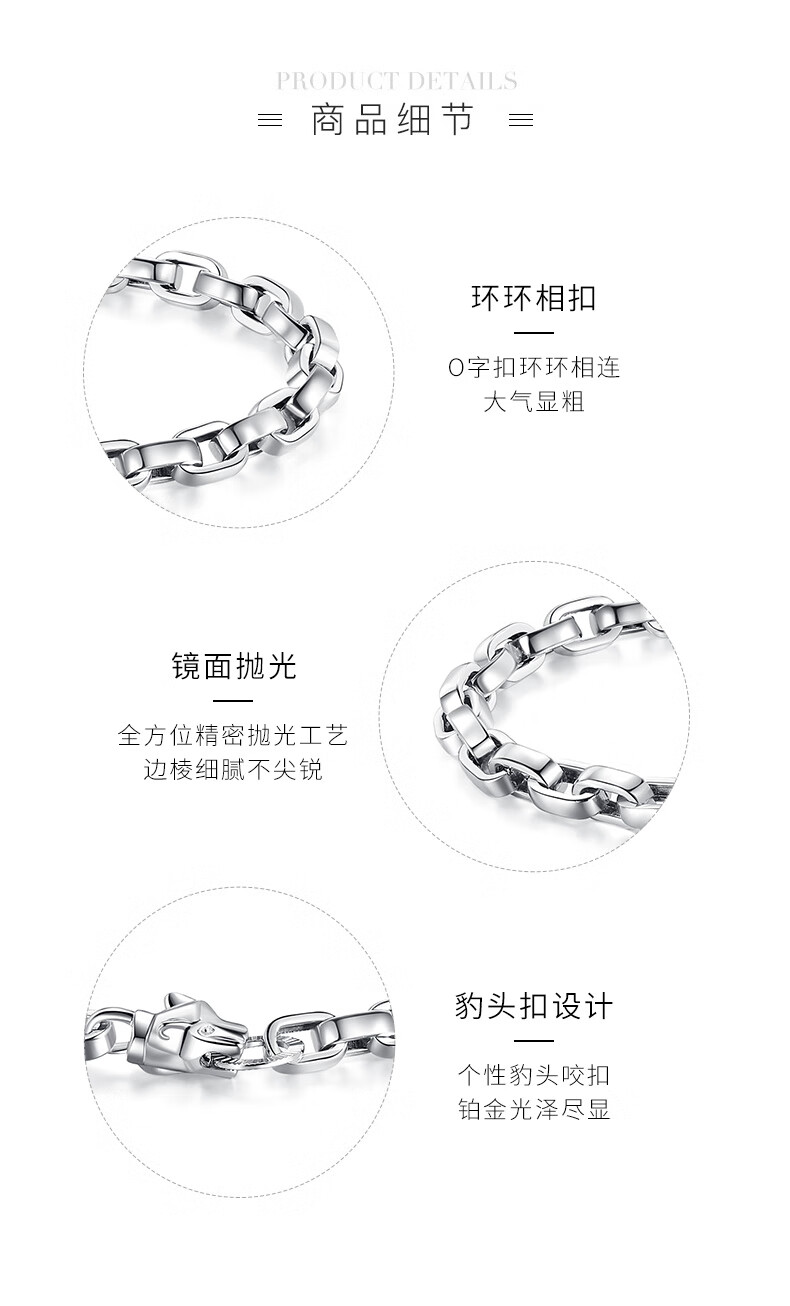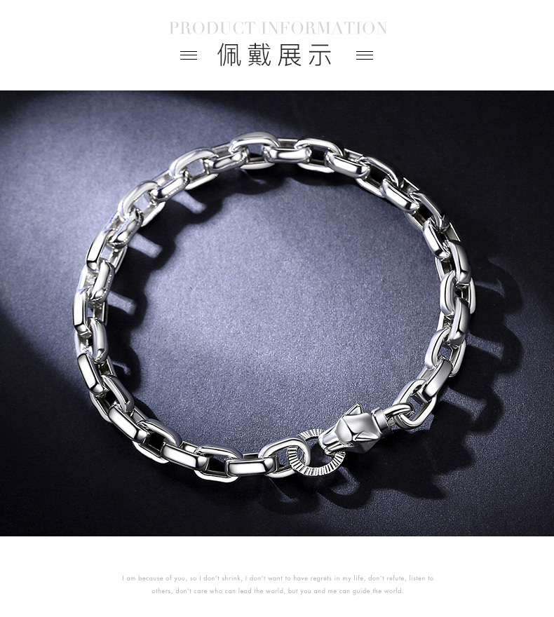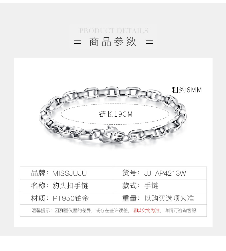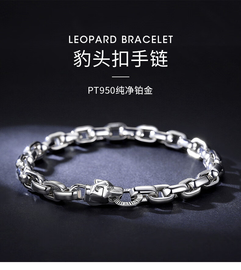 Miss JuJu pt950 men's platinum bracelet cross round O-shaped chain platinum personality domineering leopard head button (customized) 20-22g length 17-23cm thick 6mm leopard head button