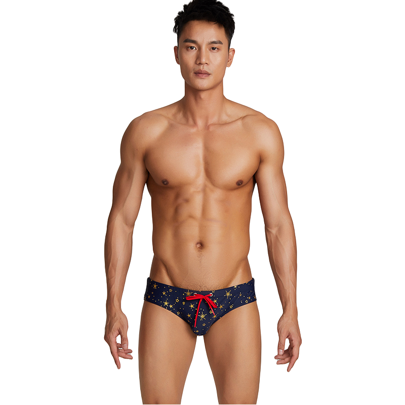 希宾(SEOBEAN)游泳裤男士三角泳裤速干性感低腰印花紧身男士泳衣 深蓝色 M