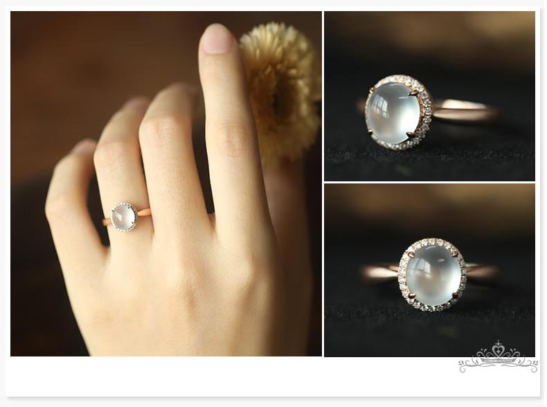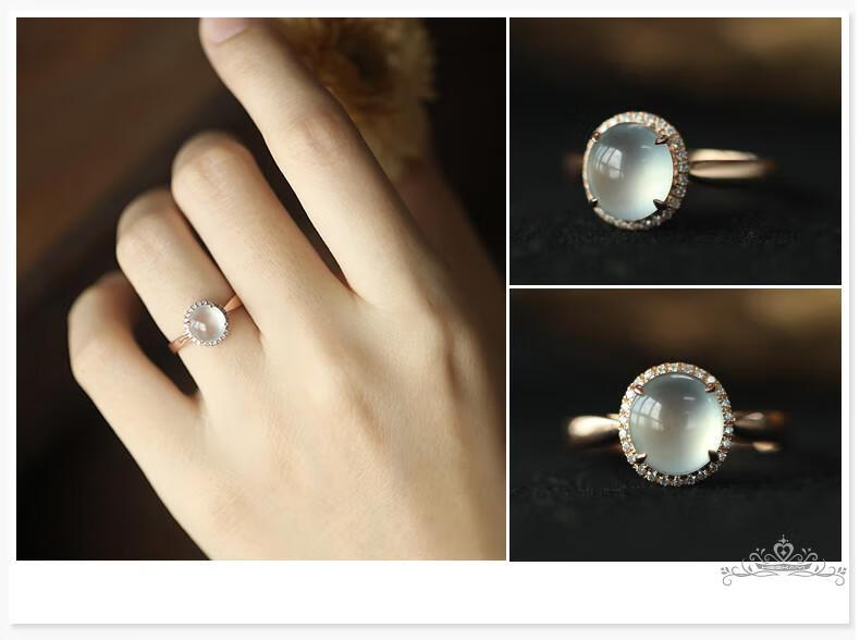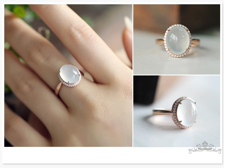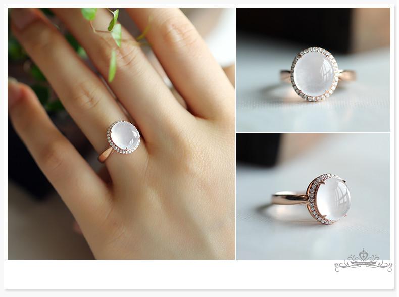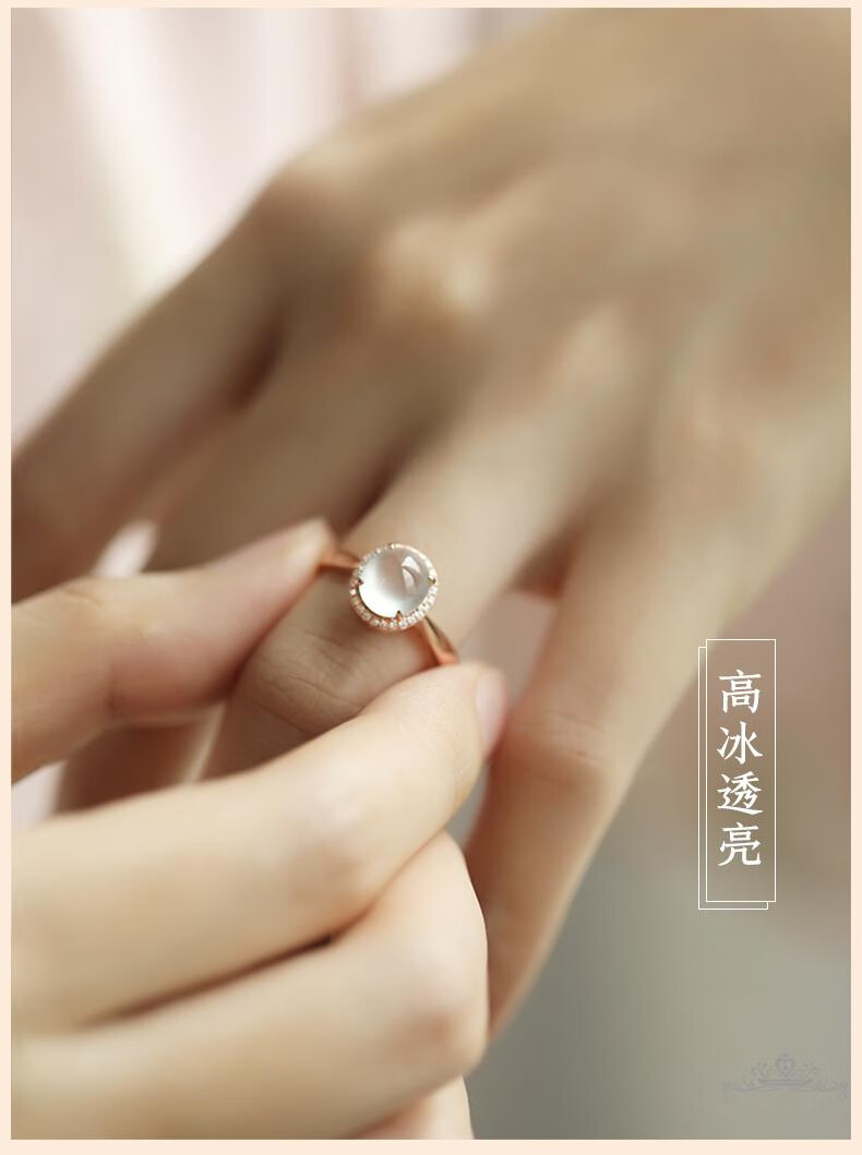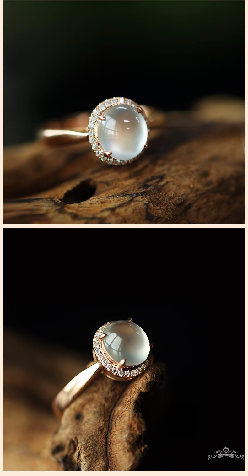 Haikai light luxury Burmese ice jade ring 18K gold inlaid jade cabochon women's ring engagement ring free white high ice white cabochon ring