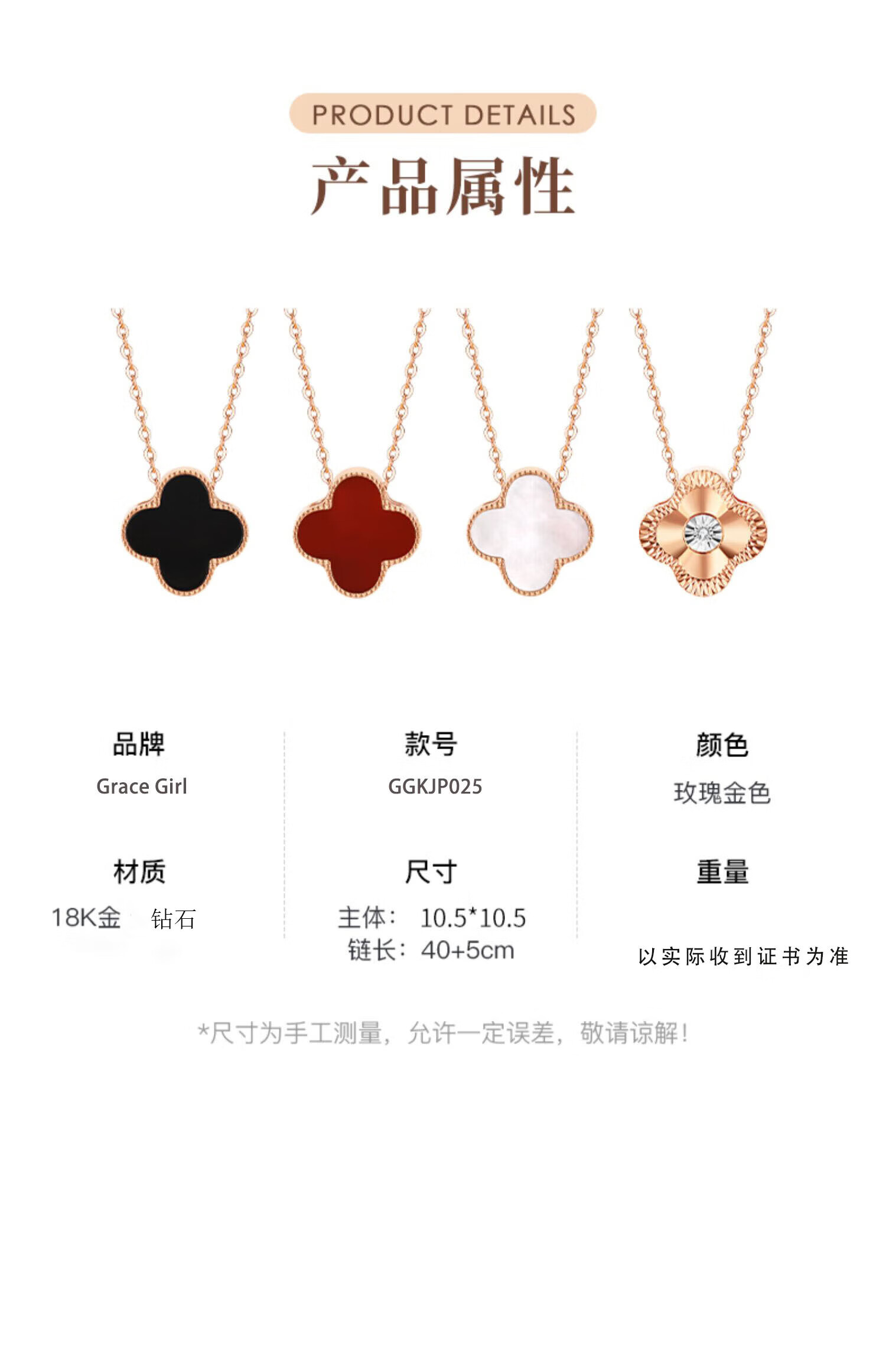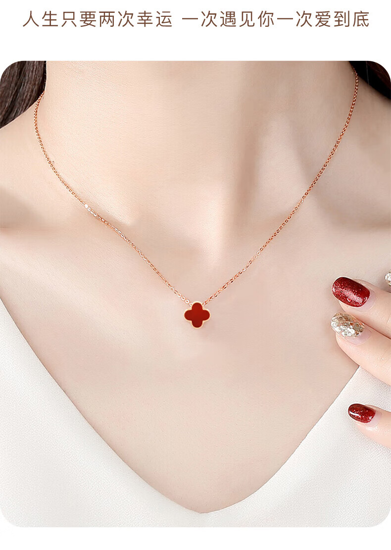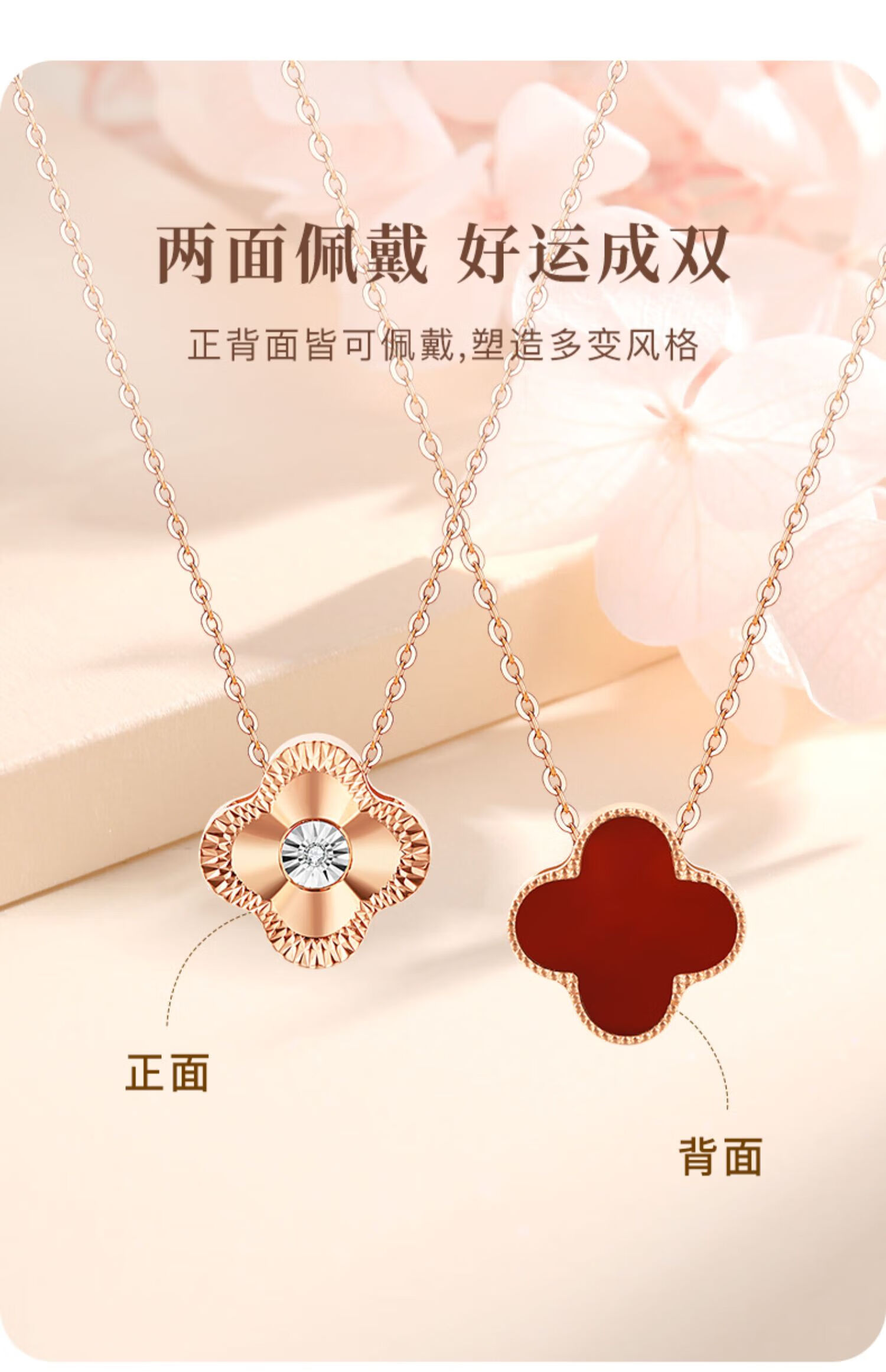 Grace Girl 18K color gold diamond four-leaf clover a two-wear necklace for women in rose gold as a Chinese Valentine's Day gift for girlfriend K gold diamond red four-leaf clover can be engraved greeting card