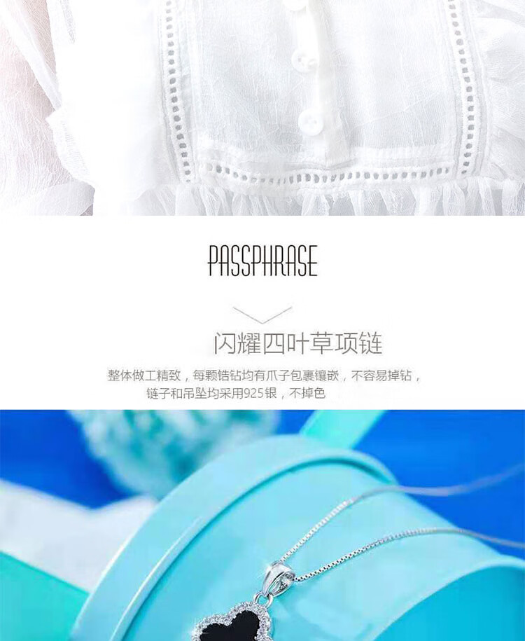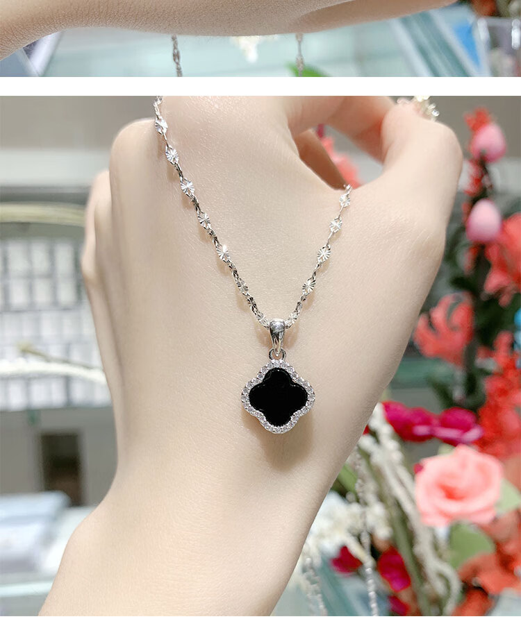 YaoYiZun black four-leaf clover sterling silver necklace women's 2025 new light luxury niche high-end sense gift for wife's birthday box chain four-leaf clover necklace