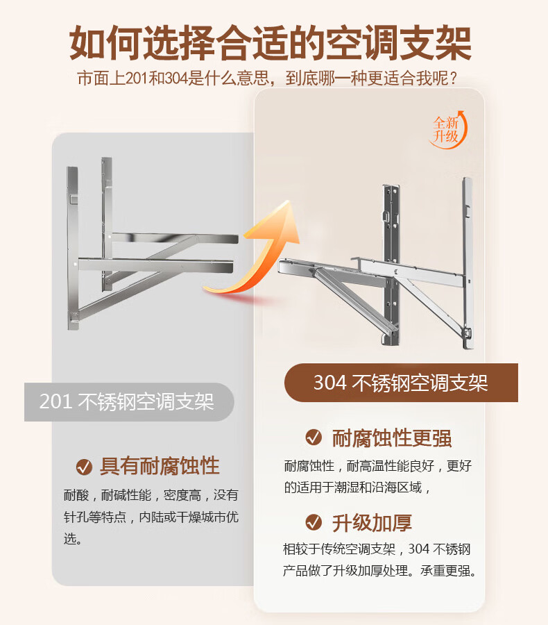 Beishi thickened air conditioner bracket stainless steel air conditioner outdoor unit bracket universal 304 stainless steel air conditioner rack suitable for outdoor air conditioner racks such as Glimei Haier TCL Kelon 1-1.5P universal with cross arm load-bearing upgrade 201 stainless steel