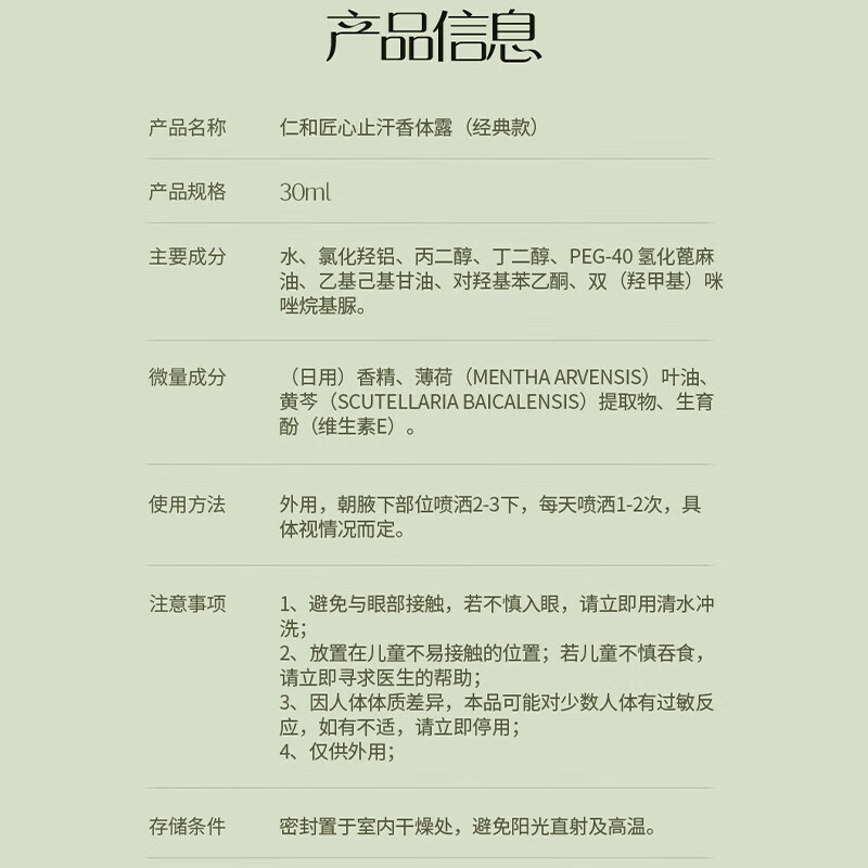 Renhe ingenious antiperspirant deodorant, body odor purifying spray, antiperspirant lotion, underarm odor purifying liquid for teenagers, men and women, three bottles of special anti-removal spray