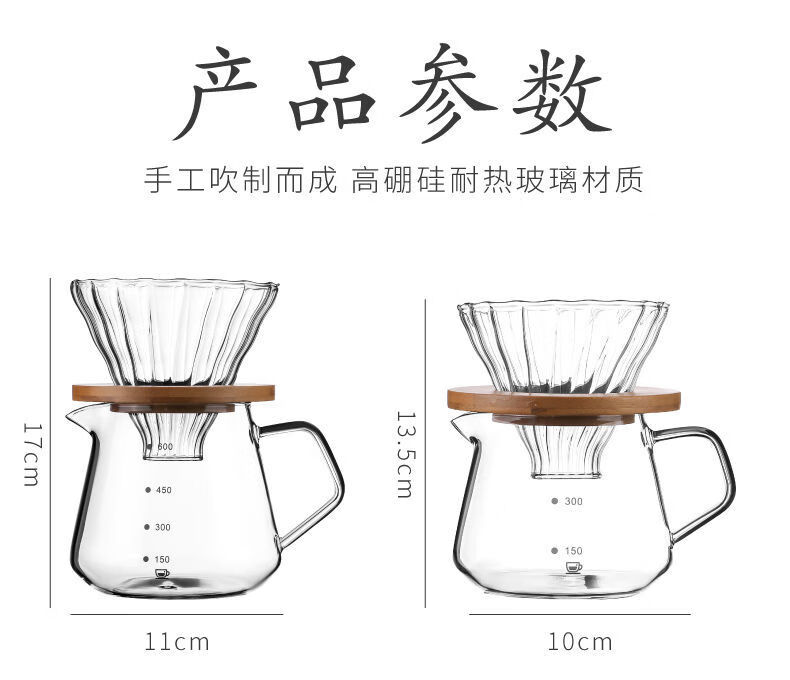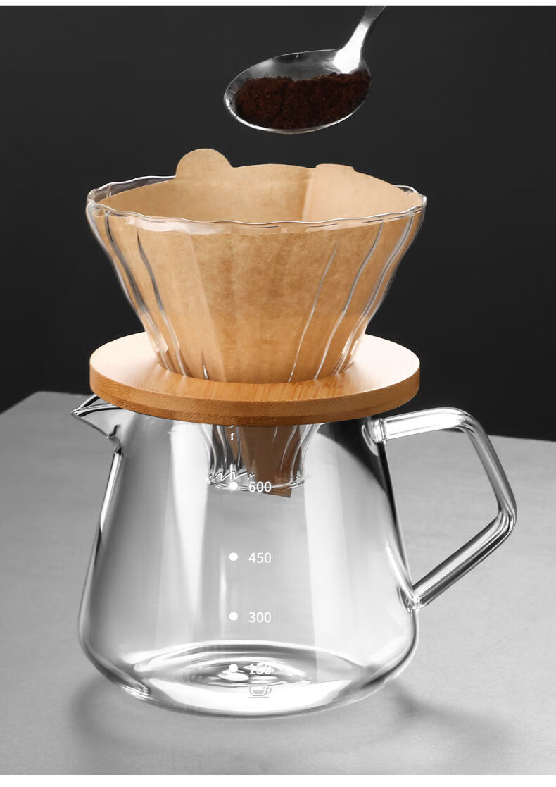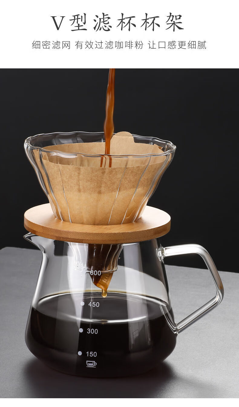 Lingai hand brewed coffee pot set high borosilicate glass high temperature resistant hand grinding artifact drip coffee filter cup sharing pot 600 ml sharing pot + filter cup + wooden tray