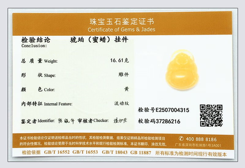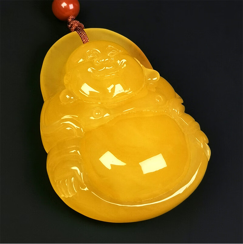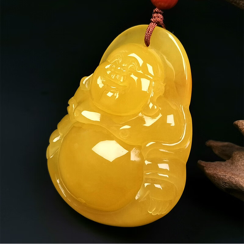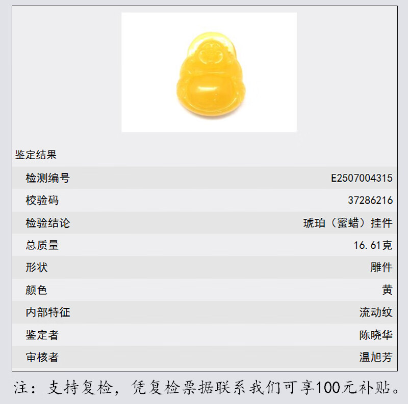 Amber School, one thing, one picture, one certificate, beeswax pendant, Buddha statue carving, natural amber, men's and women's necklace, pendant, 16.61g, 48*40*16mm