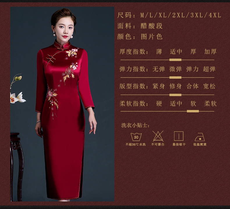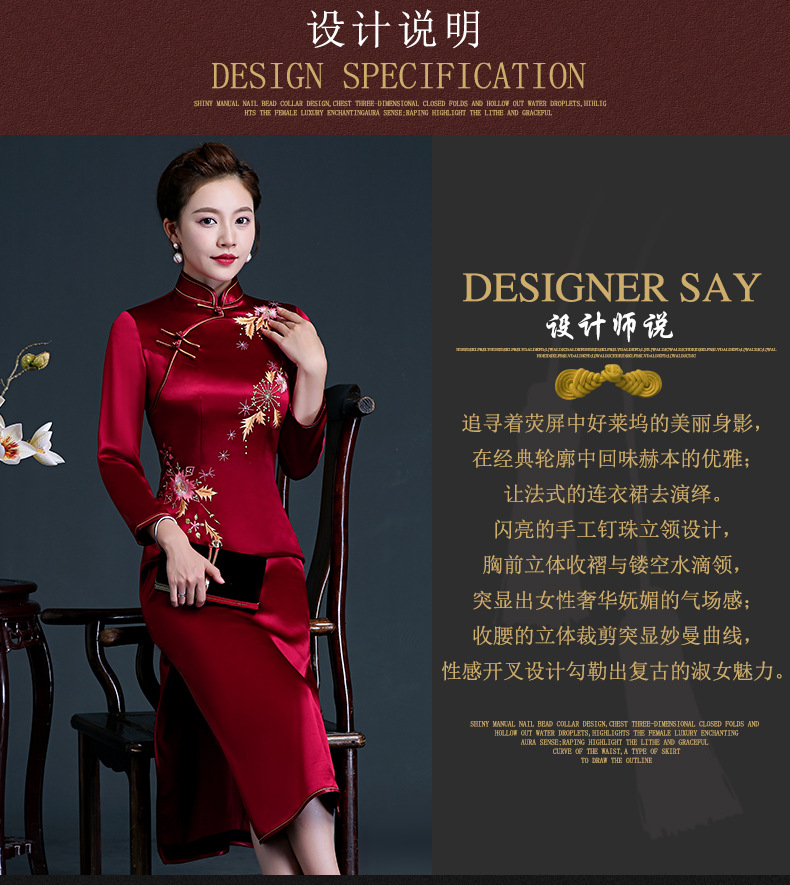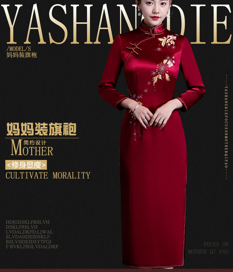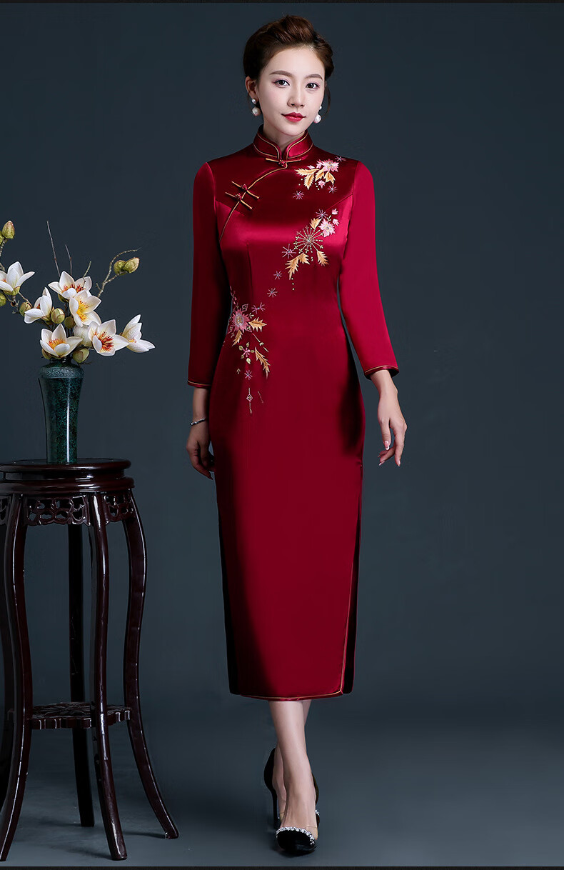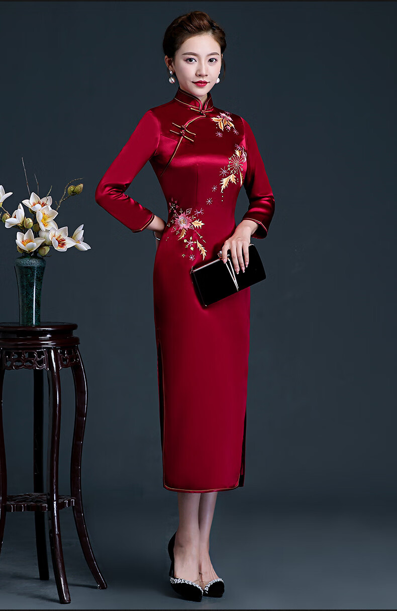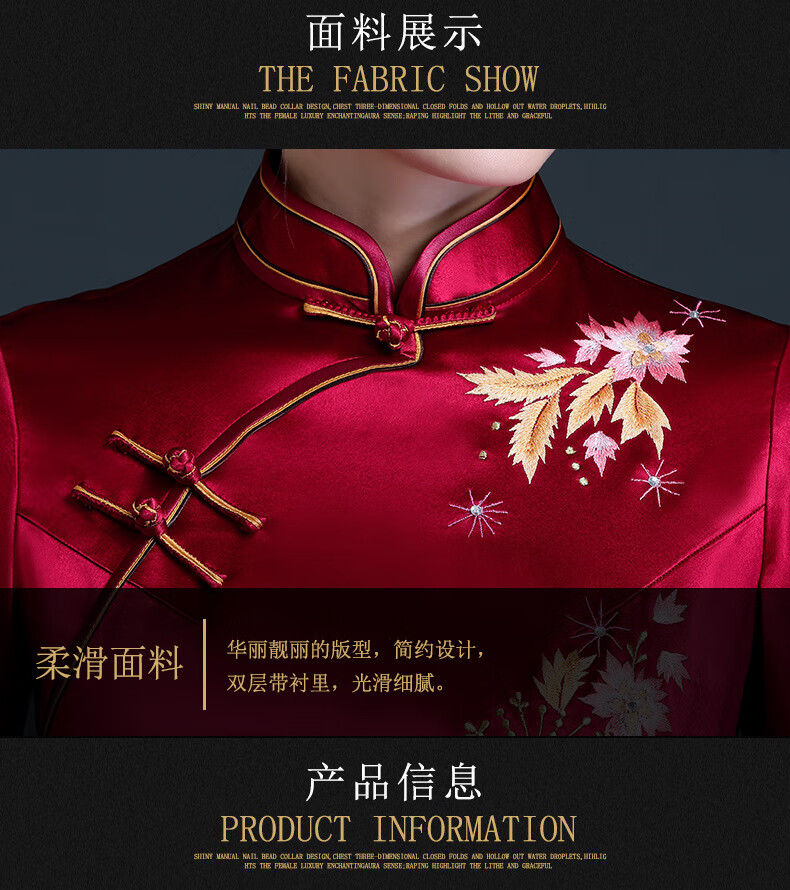 Gu Juannian's grandma's banquet cheongsam dress new wedding banquet mother's dress long large size improved long-sleeved cheongsam burgundy M