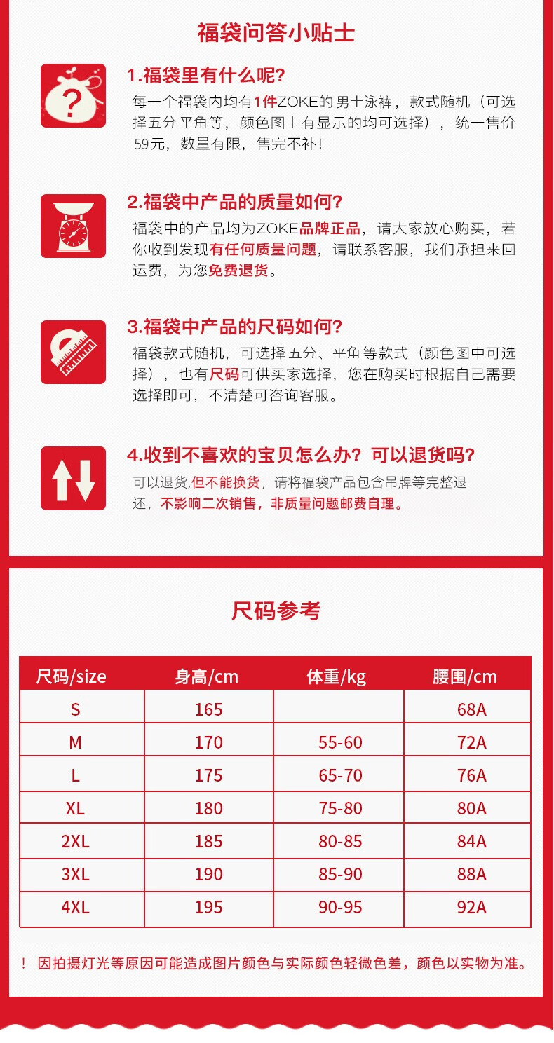 洲克zoke一口价福袋 男士泳裤 五分泳裤 平角泳裤 三角泳裤 颜色随机 三角 M