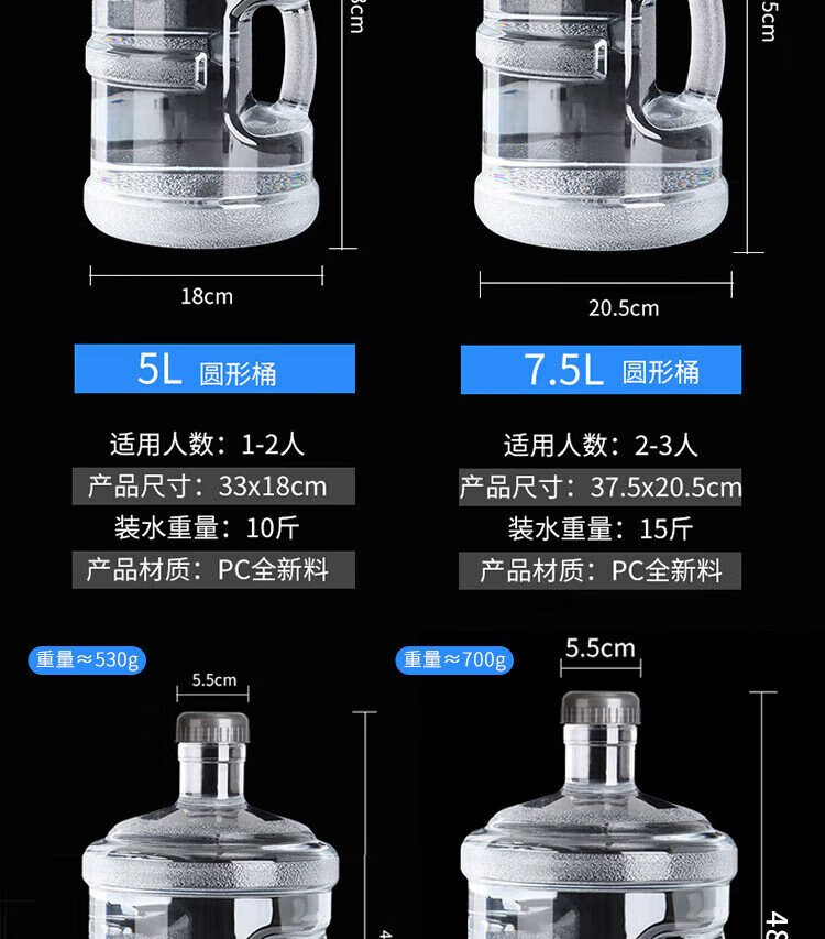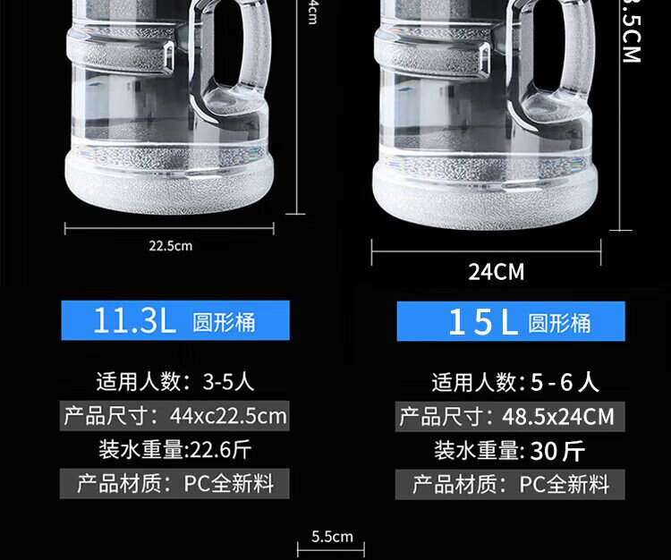 Baijie bucket portable pure water bucket outdoor self-driving tour portable tea bucket water dispenser household bottled water storage bucket 7.5L thickened food grade transparent PC