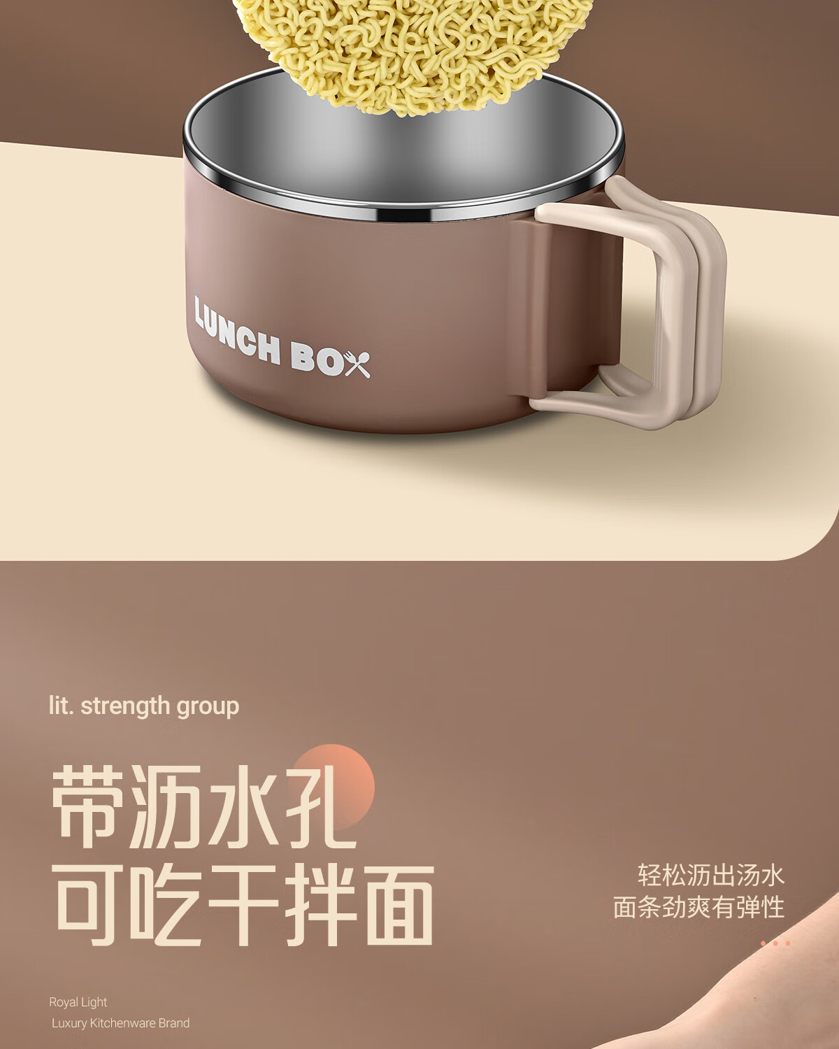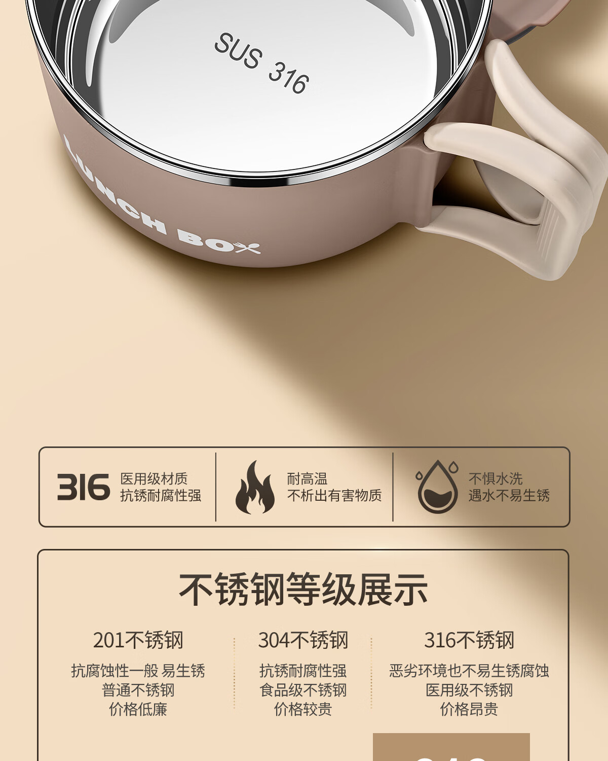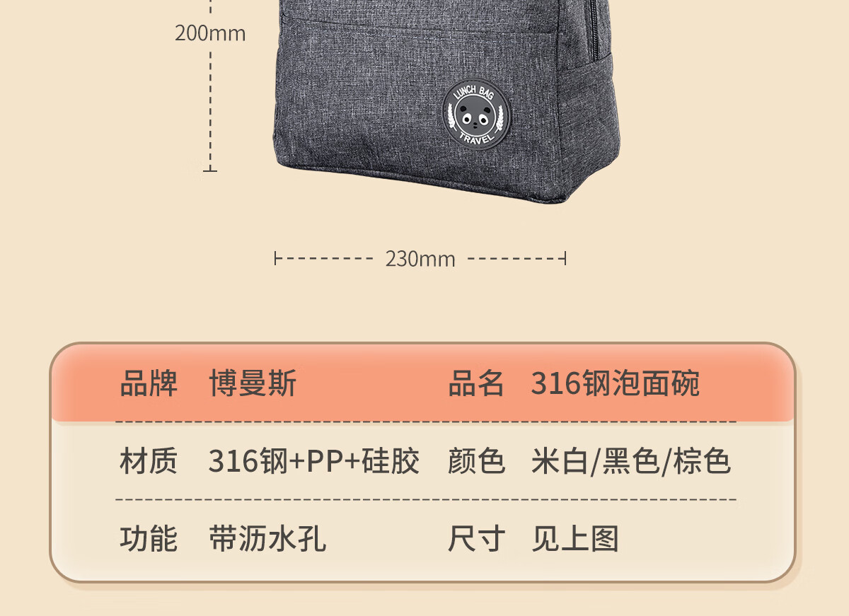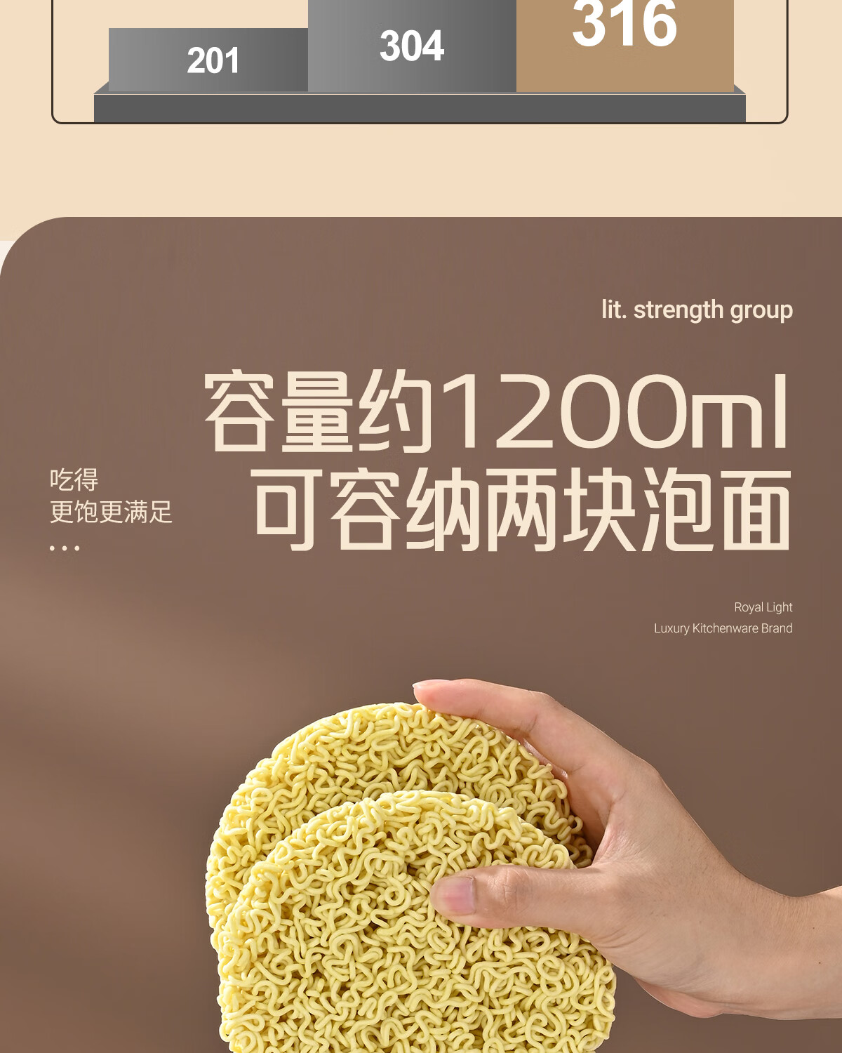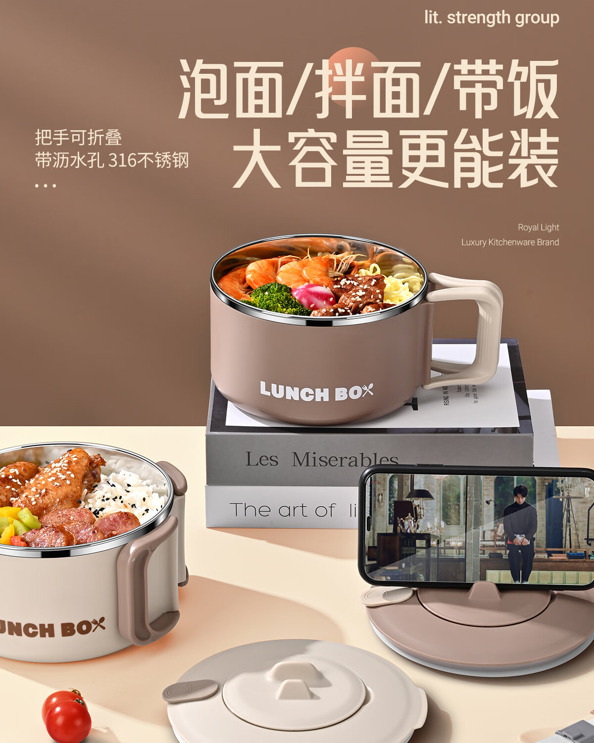 Bomans 316 stainless steel lunch box with lid for dormitory students large-capacity instant noodle bowl drain canteen rice artifact upgrade 316 black