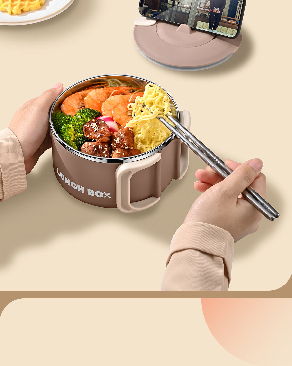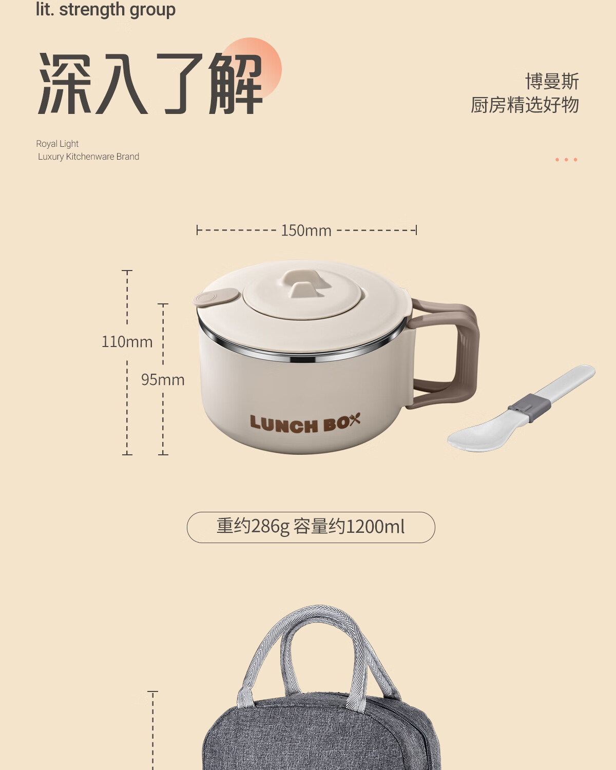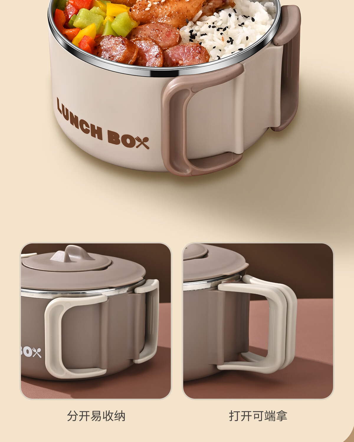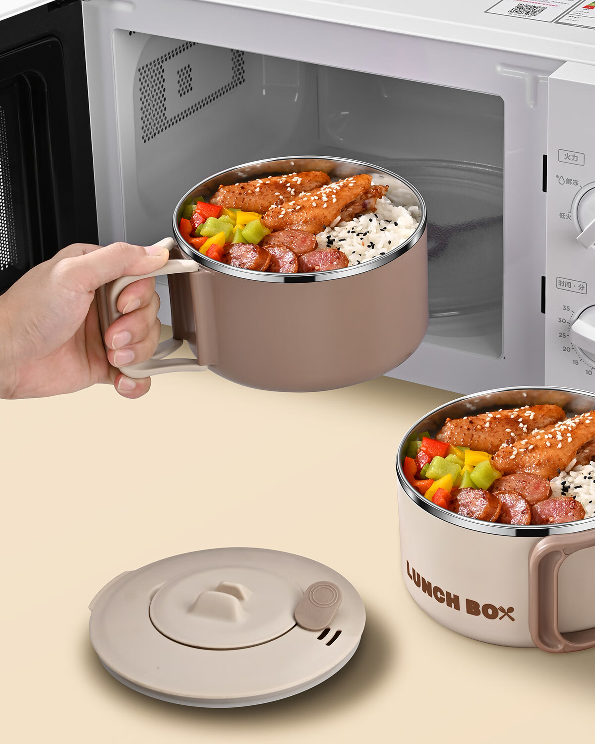 Bomans 316 stainless steel lunch box with lid for dormitory students large-capacity instant noodle bowl drain canteen rice artifact upgrade 316 black