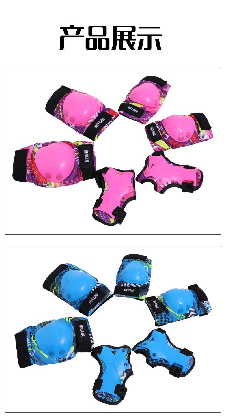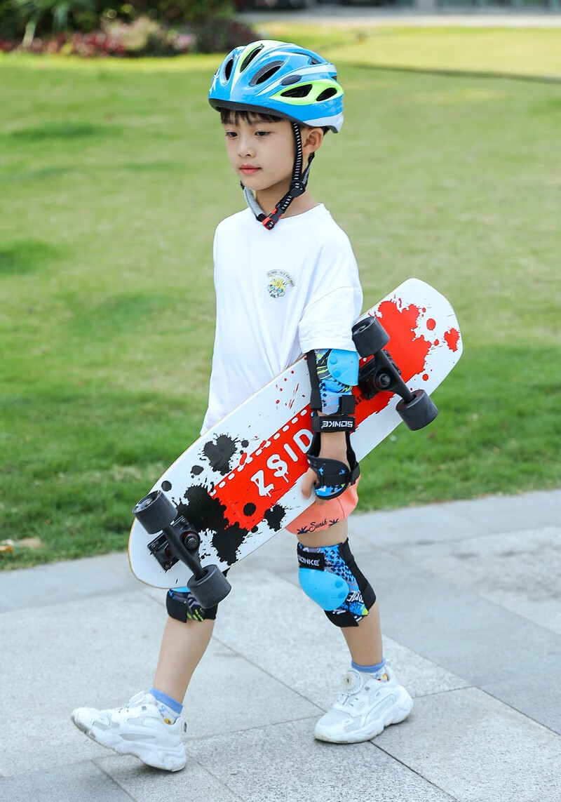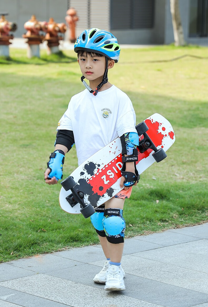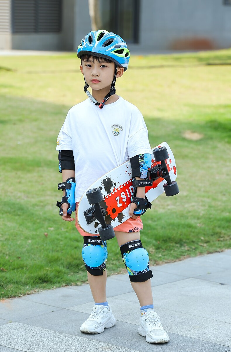 SONKE children's roller skating protective gear helmet set skateboarding knee protection riding training summer safety anti-fall bicycle 7-piece set blue protective gear + helmet 30-70Jin Jin equals 0.5 kg (reference 4-11 years old)