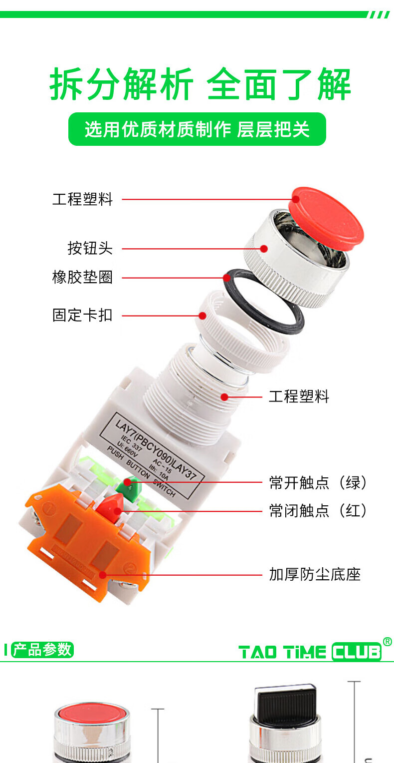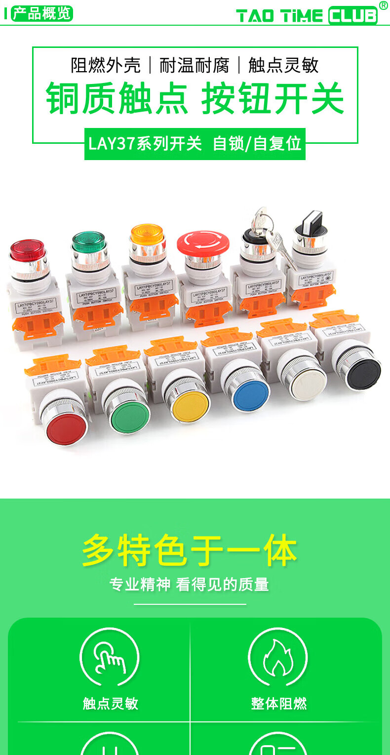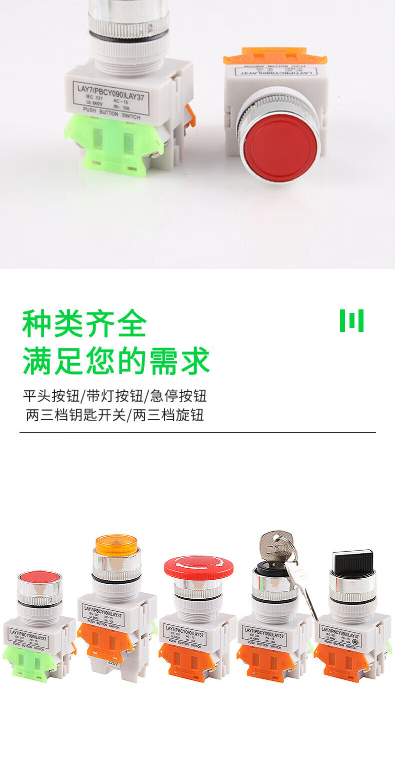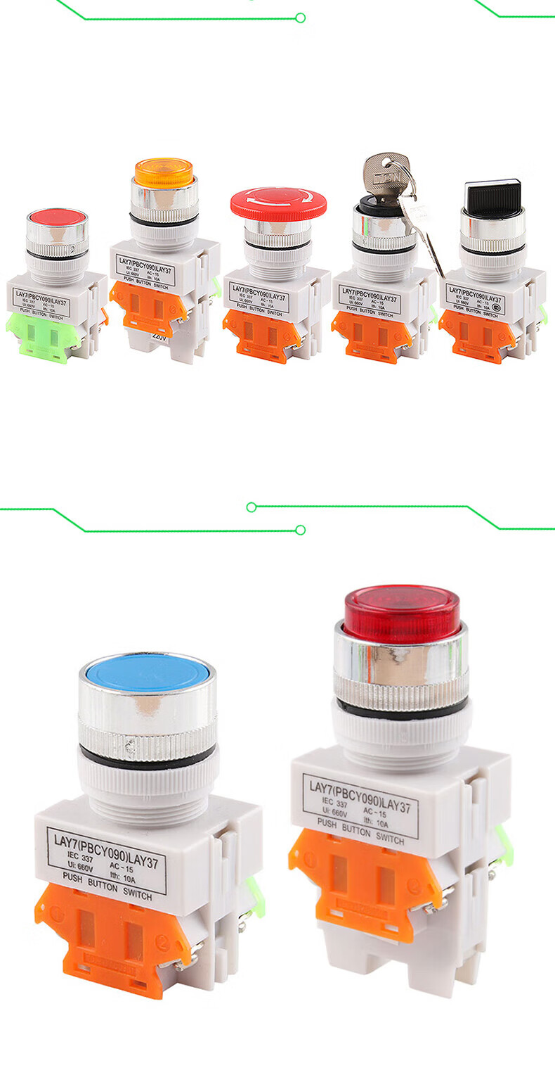 LAY37-11 push button switch, self-resetting, self-locking, flat button emergency stop switch with light, second gear and third gear knob, red mushroom head, self-resetting, no Specifications
