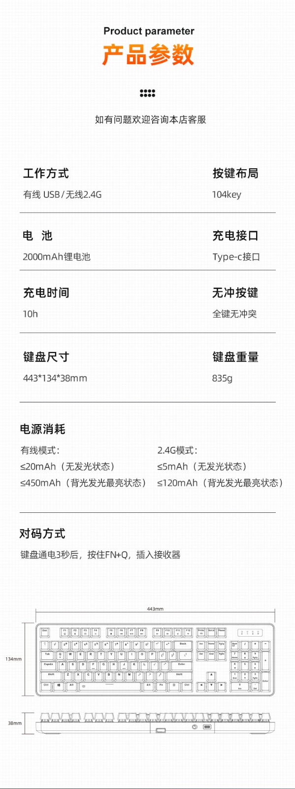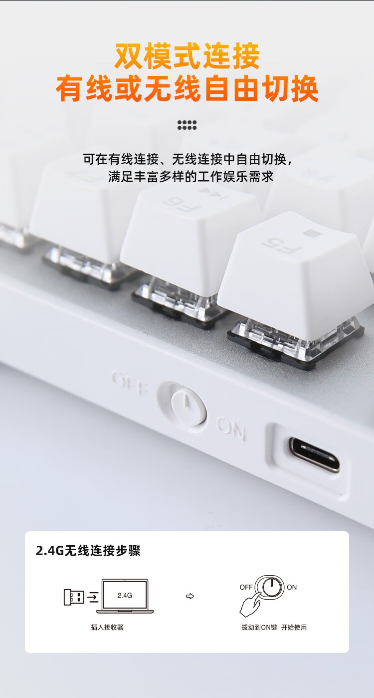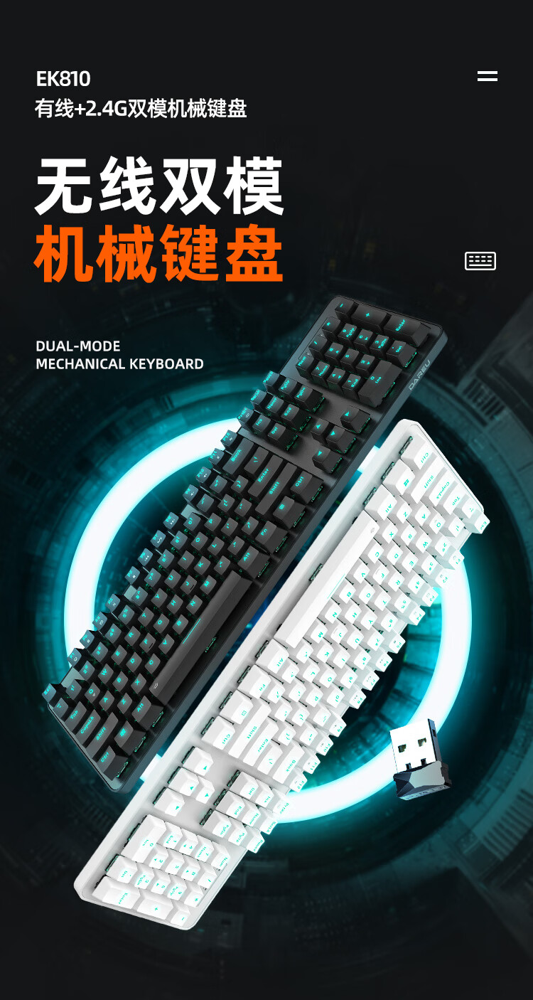 Daryou EK810 Wrangler Bluetooth Wireless Mechanical Keyboard Esports Chicken Game Wired 2.4G Dual Mode 104 Key Notebook Desktop Computer Office Home White-104 Key Wireless Dual Mode Black Axis