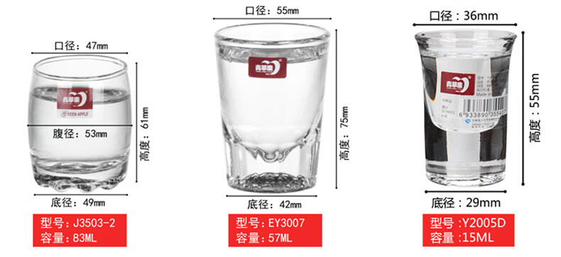 Green apple boudoir glass, white wine glass, swallowing glass, sip glass, bar wine cup, special small glass (6 pieces) J3503-2 machine-blown wine glass 83ml