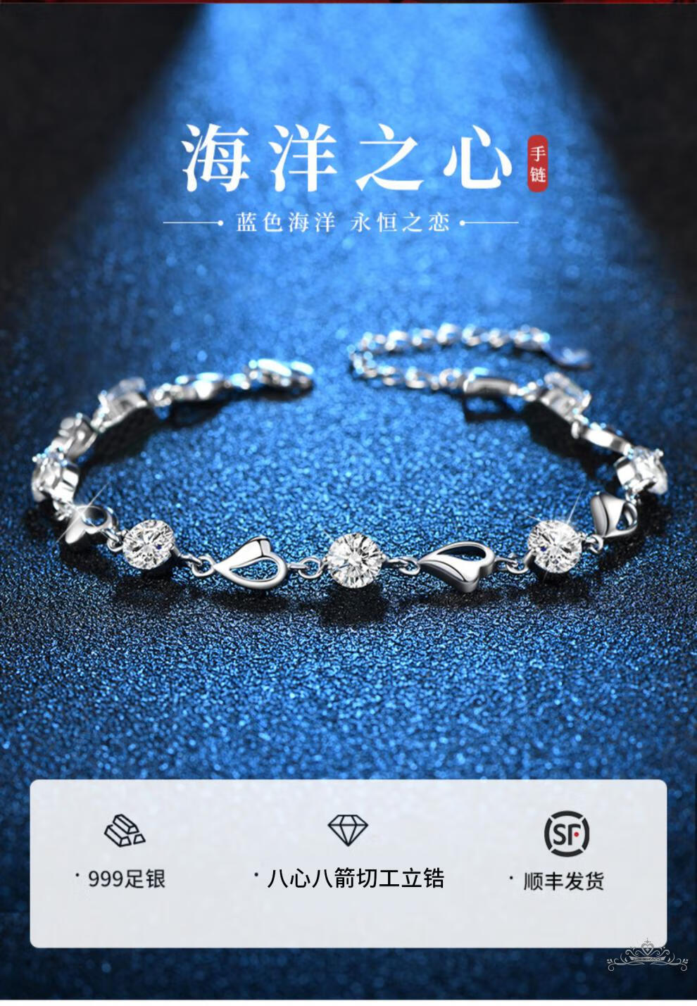 Haikayi Light Luxury Heart of the Ocean Bracelet Women's Gemstone Bracelet Anniversary 520 Valentine's Day Birthday Gift for Elderly Inlaid with Swarovski Blue Zirconium
