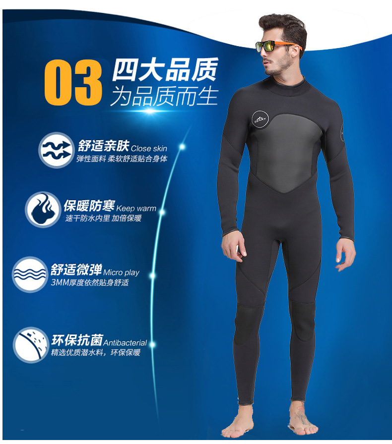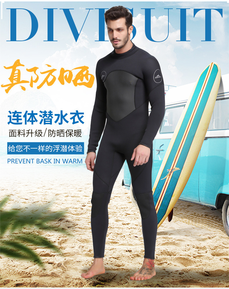 Dianou 2025 new men's winter swimming wetsuit thickened warm surfing suit snorkeling suit diving long-sleeved one-piece swimsuit SBT 1283 black 1.5mm 2XL