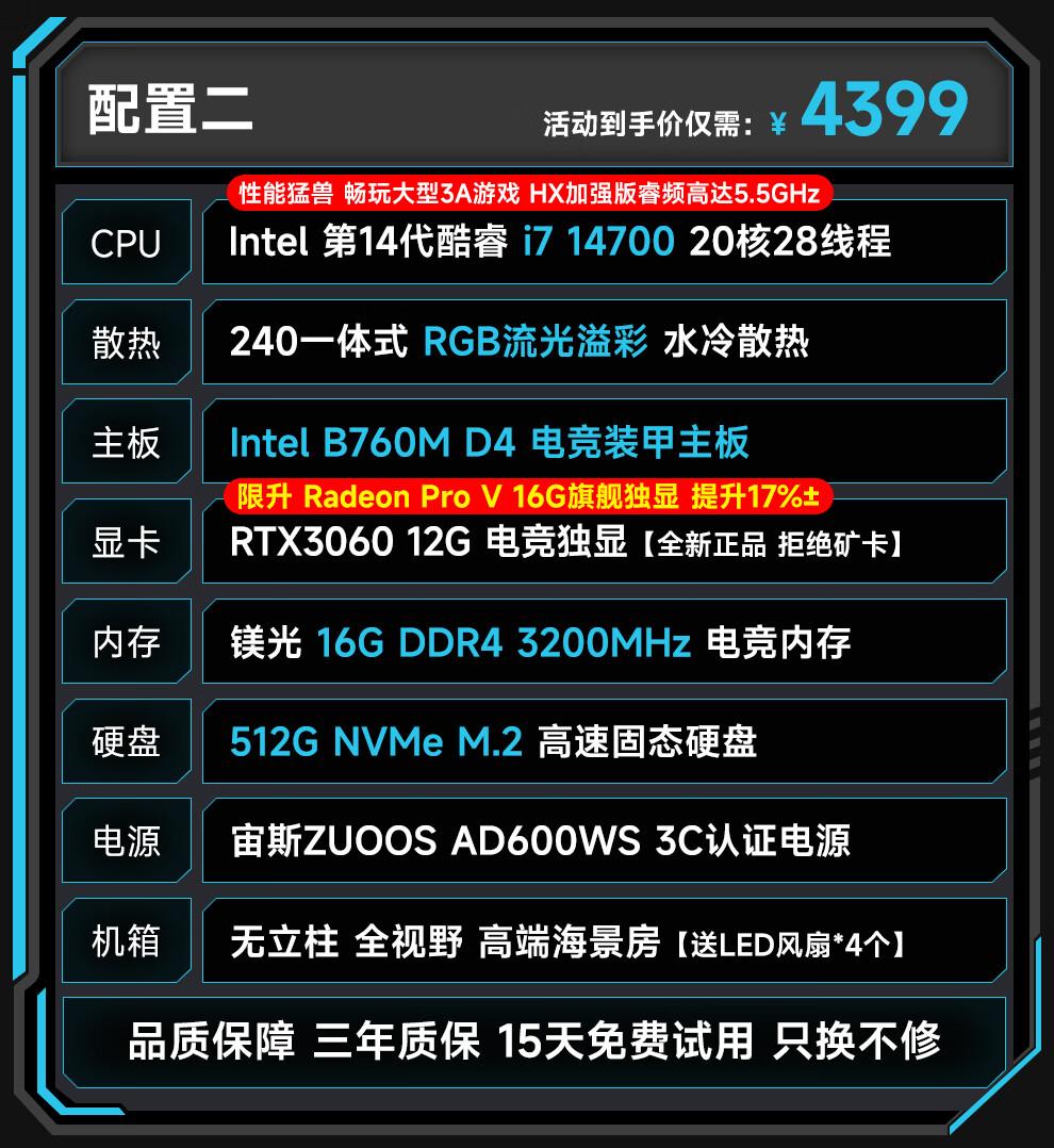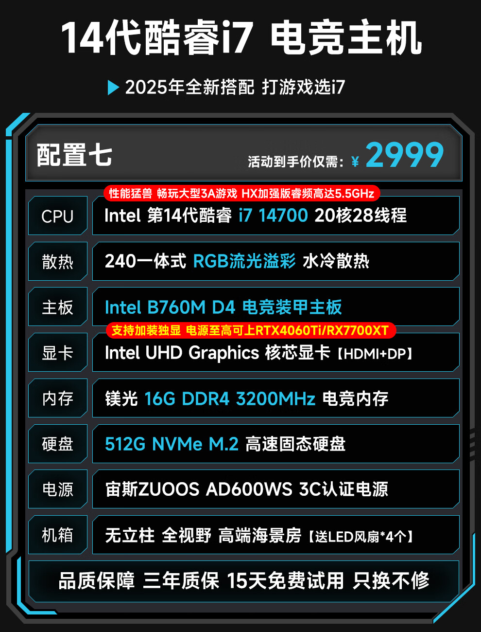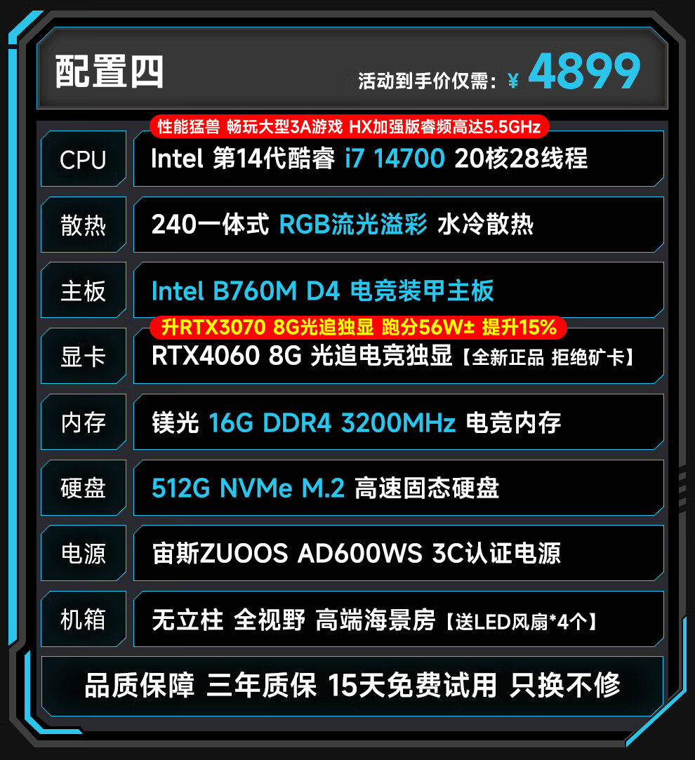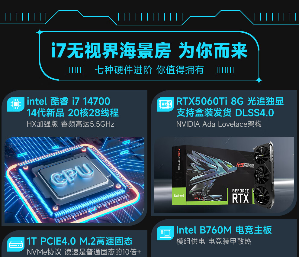 Reso i7 13700 liter 14th generation Core i7 desktop assembly computer host RTX5060/4060 game high-end e-sports independent display live broadcast design rendering complete machine DIY complete machine configuration four 14th generation Core i7丨RTX4060 8G