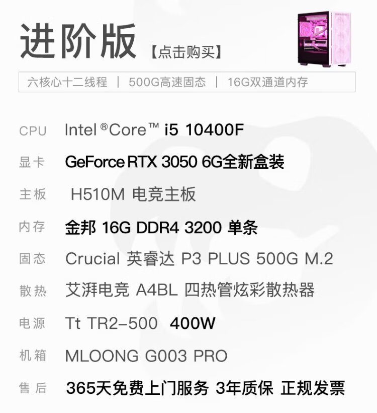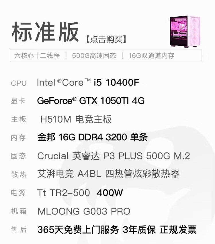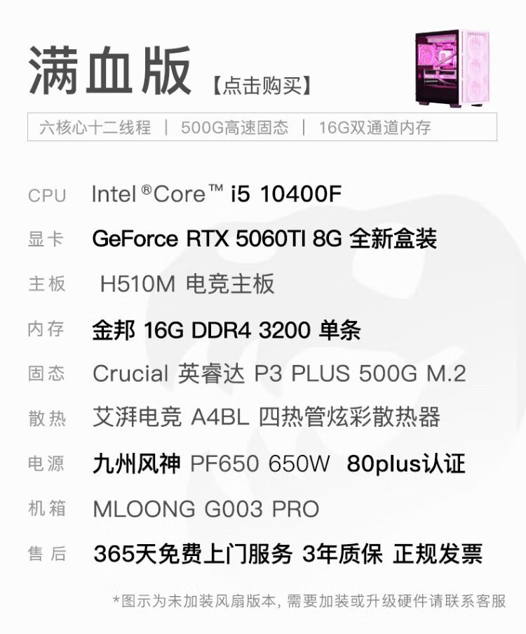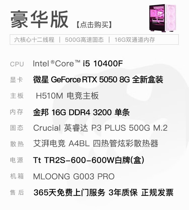 Minglongtang i5 10400F/1660/RTX5050/5060/5060Ti graphics card computer host desktop assembly machine diy game e-sports home design complete set of office machine high-end version i5 10400F/GTX1660S 6G single host