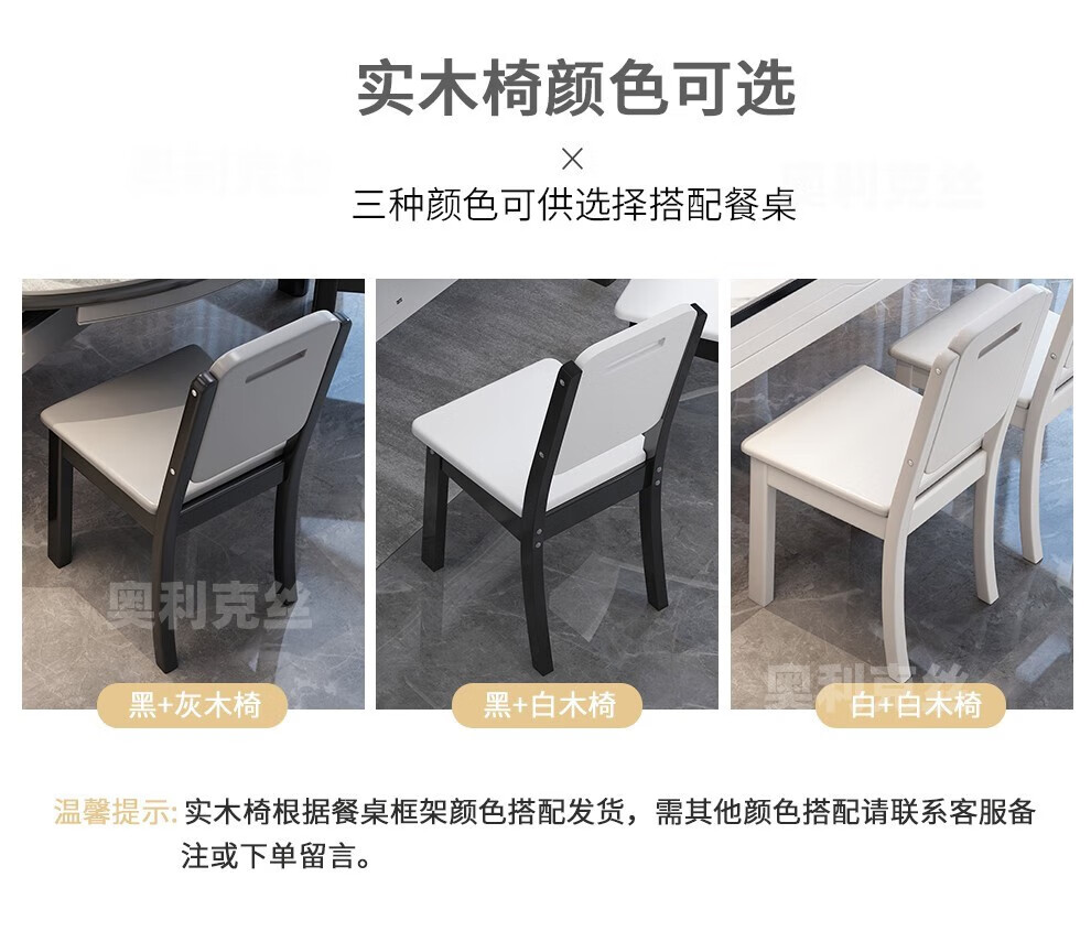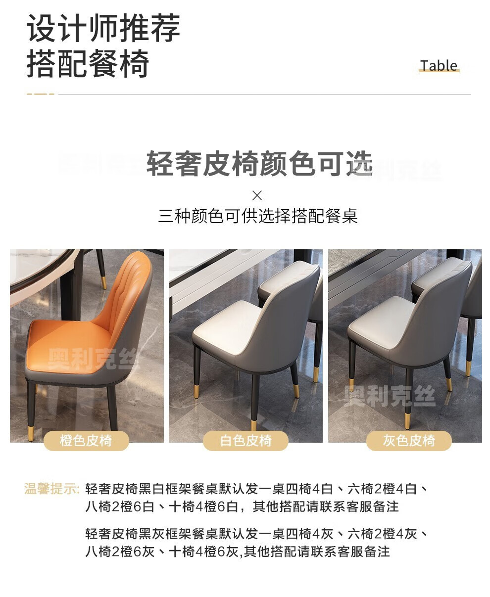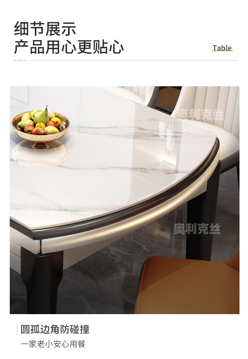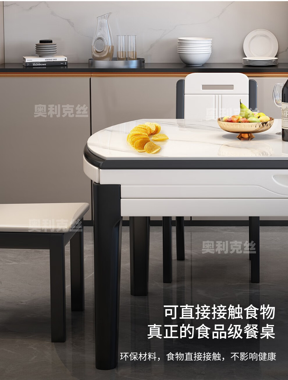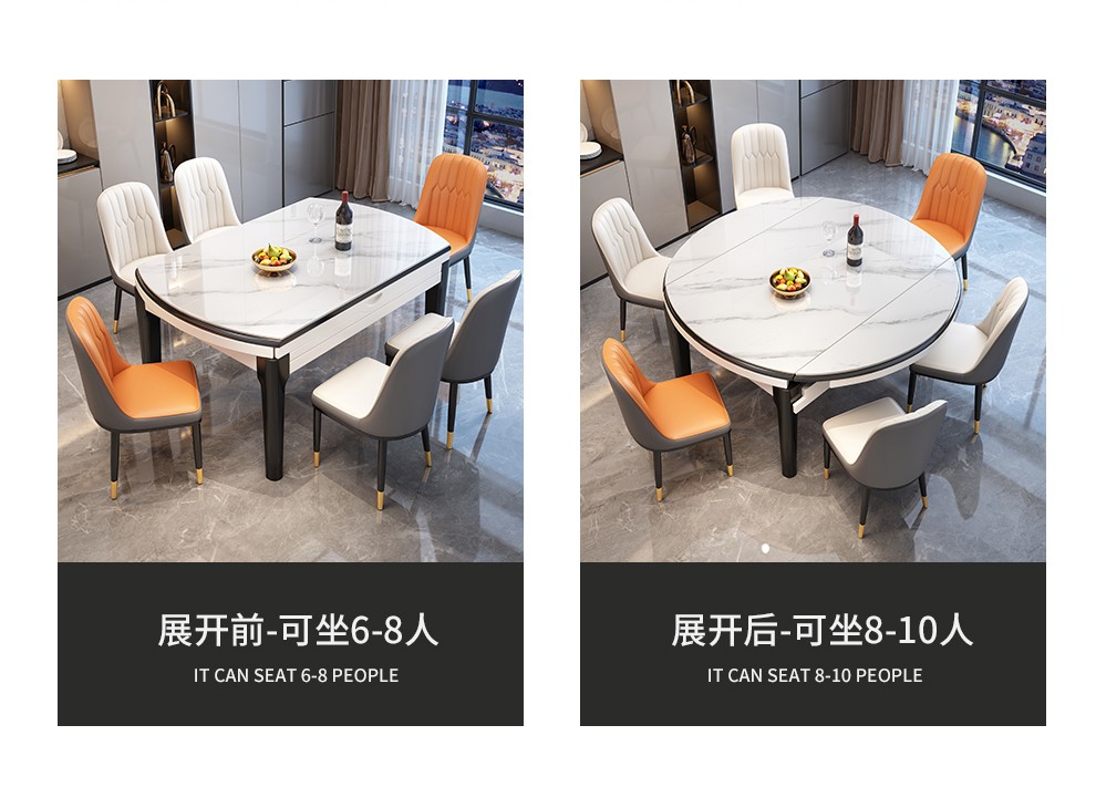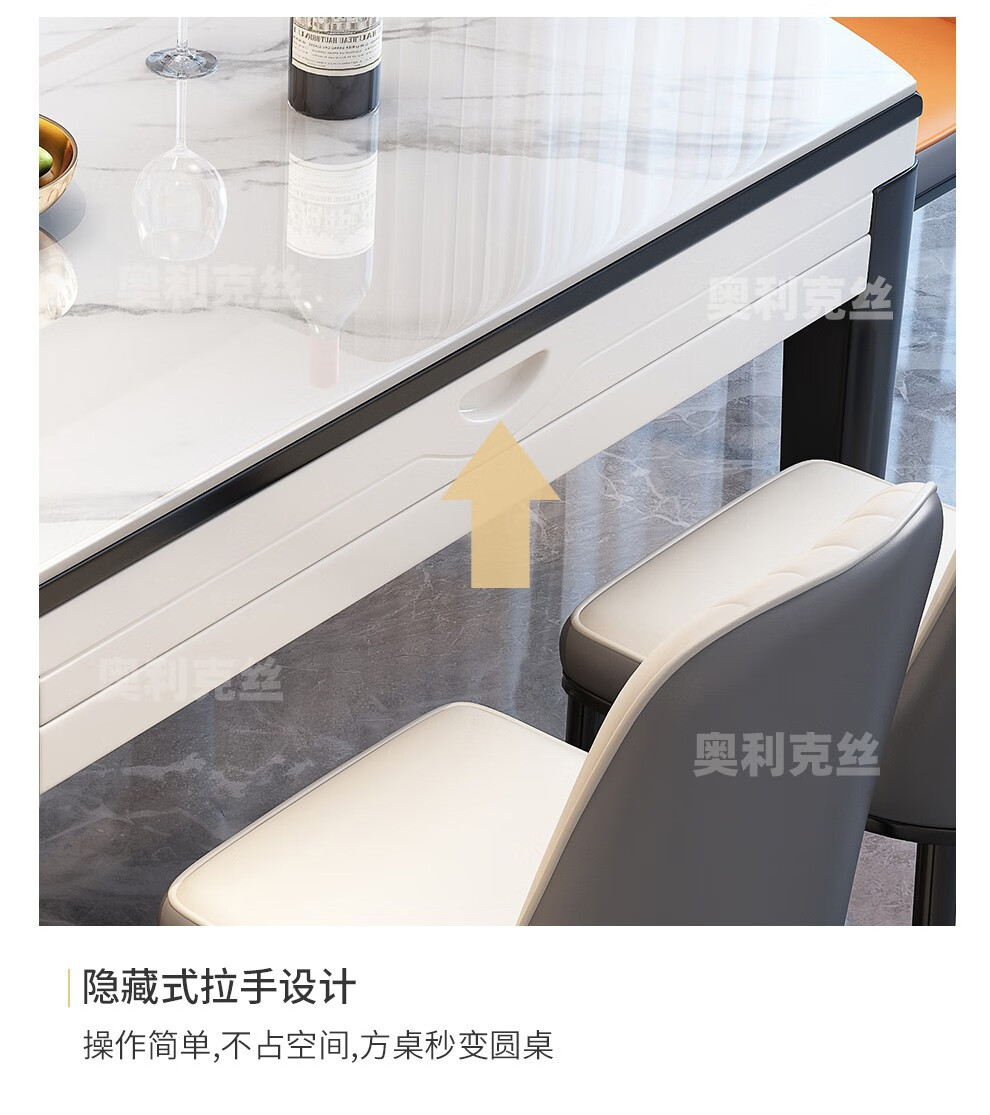 Orix glossy slate dining table and chair combination, modern and simple solid wood dining table, retractable and folding round table, dining table, glossy snow mountain white - black and white frame, light luxury leather chair style, 1.35 meters, one table and six chairs, 12MM thickened slate