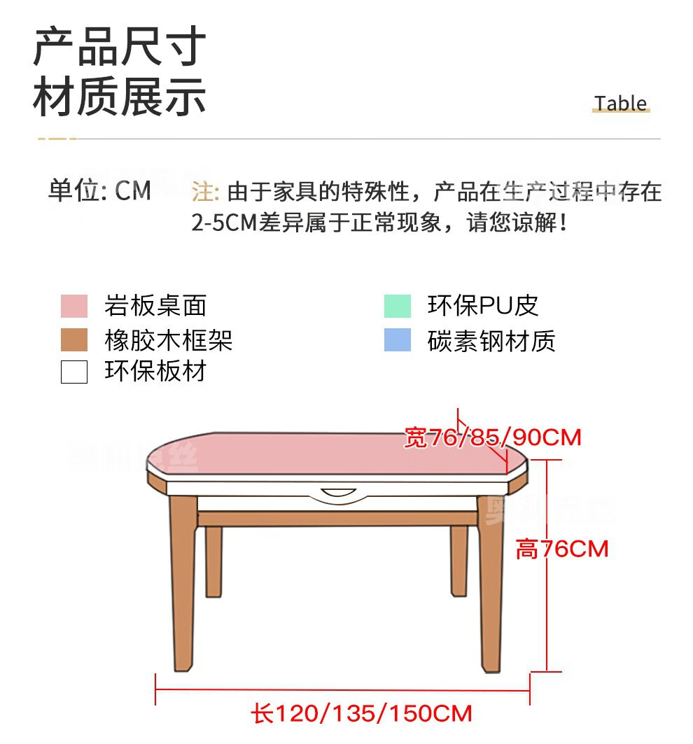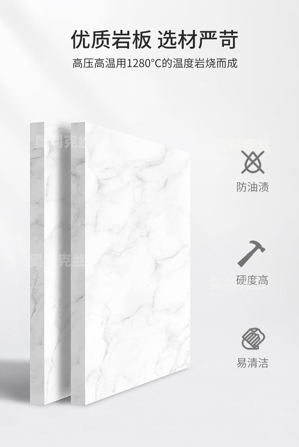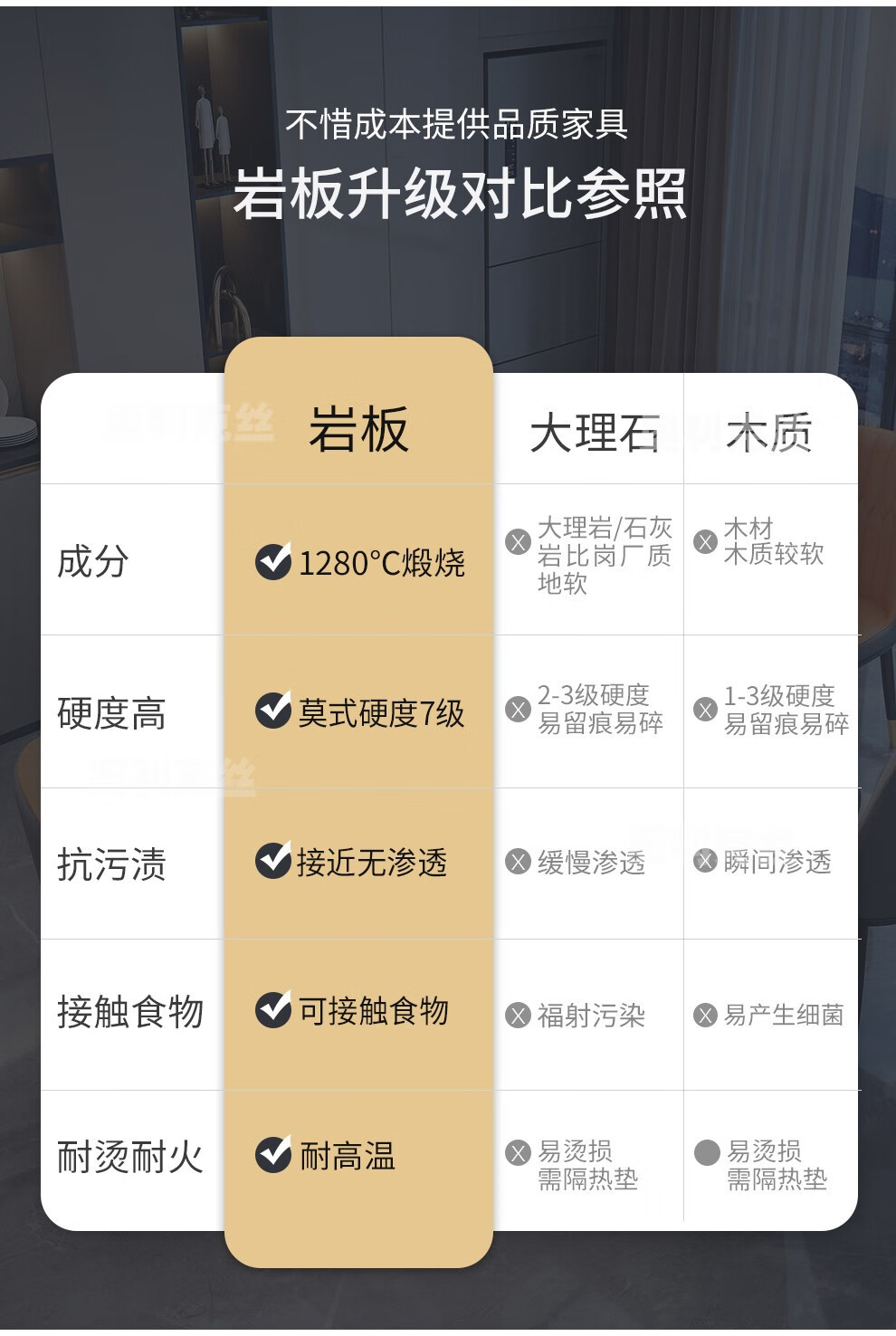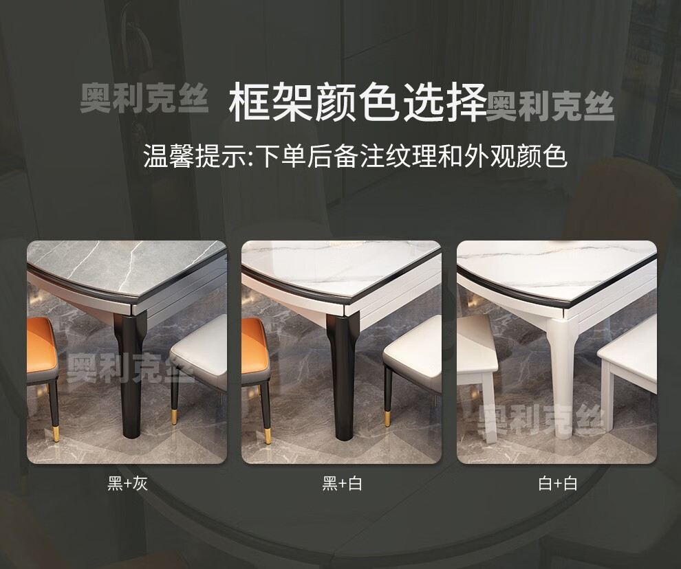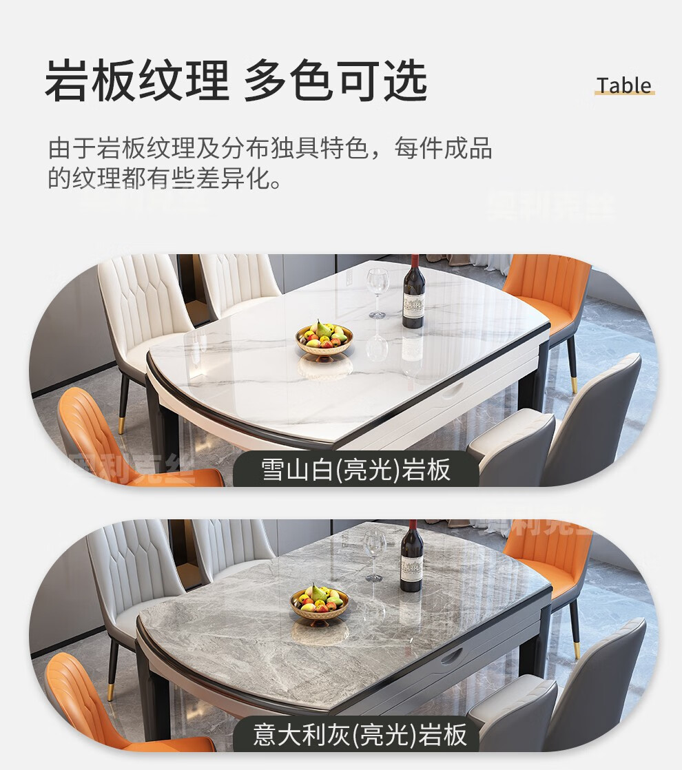 Orix glossy slate dining table and chair combination, modern and simple solid wood dining table, retractable and folding round table, dining table, glossy snow mountain white - black and white frame, light luxury leather chair style, 1.35 meters, one table and six chairs, 12MM thickened slate