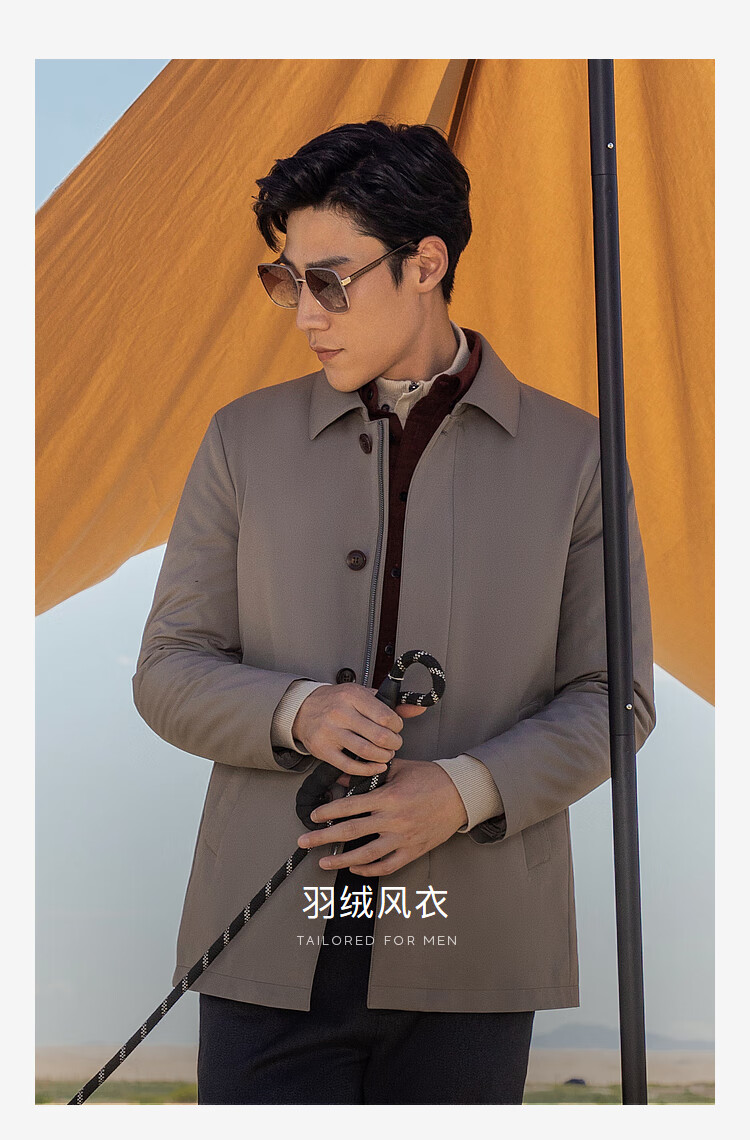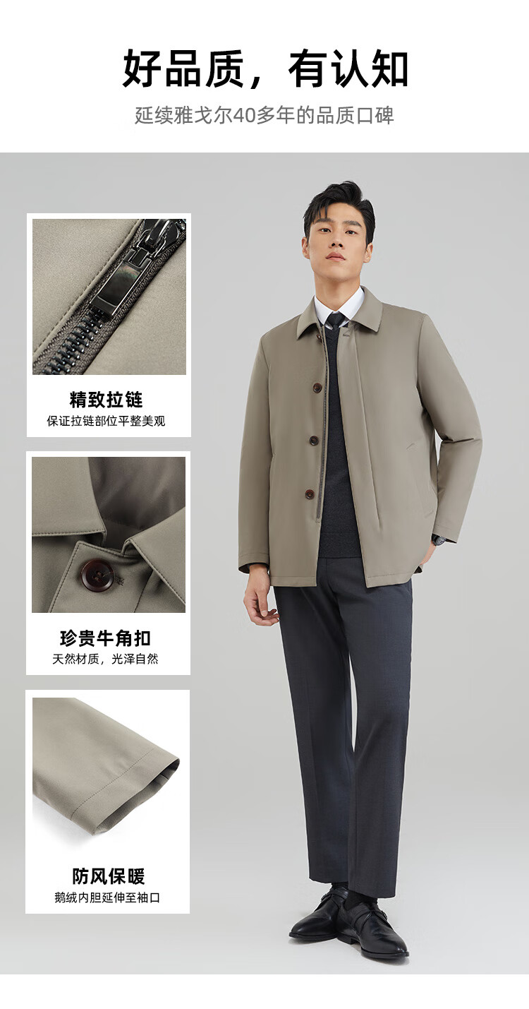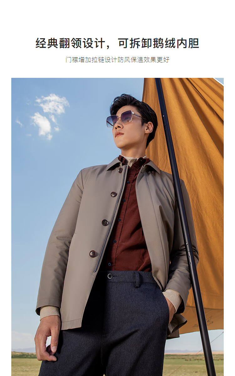 YOUNGOR windbreaker men's lapel long down windbreaker nylon removable goose down liner men's top jacket khaki L 175/96A