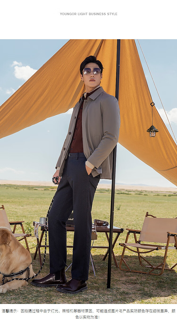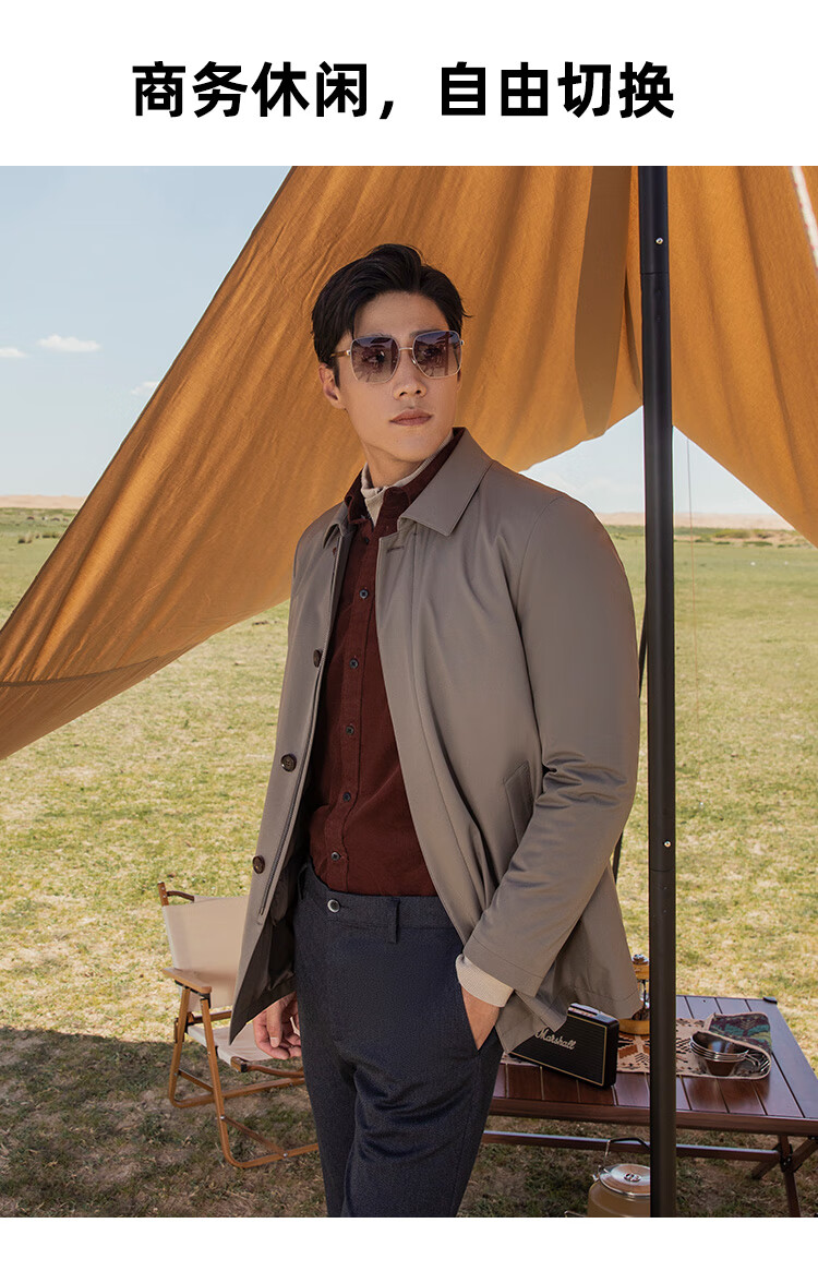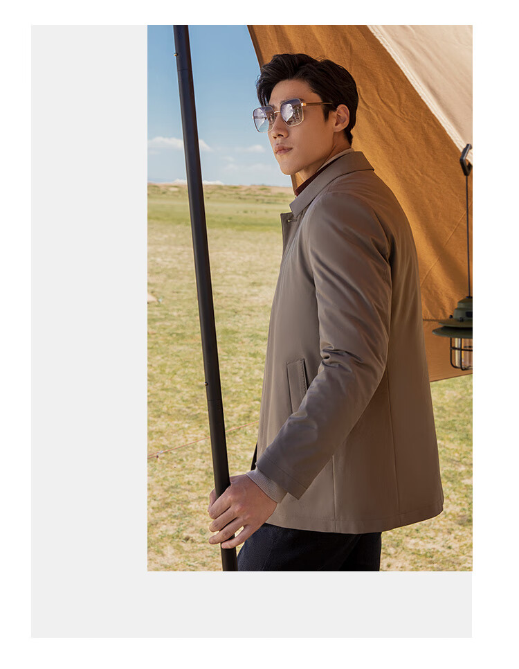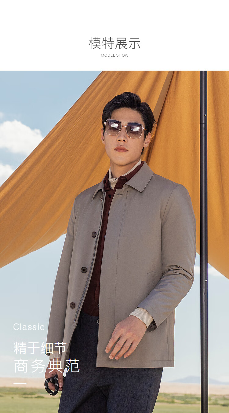 YOUNGOR windbreaker men's lapel long down windbreaker nylon removable goose down liner men's top jacket khaki L 175/96A