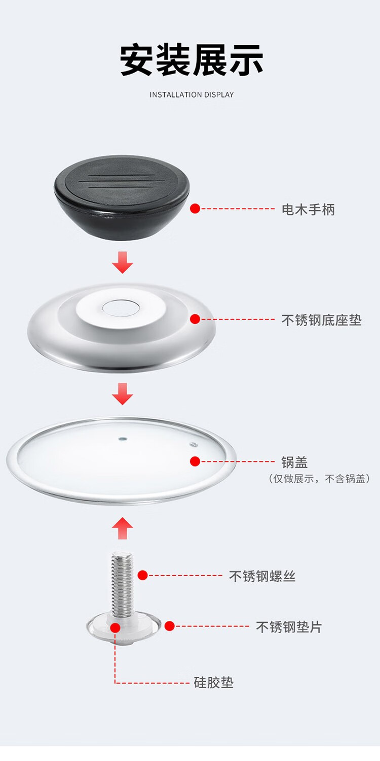 Pot lid handle, pot lid cap, round pot lid top bead head, wok, frying pan, soup pot, milk pot, hot pot, steamer, universal pot lid accessories, 1 pot lid handle