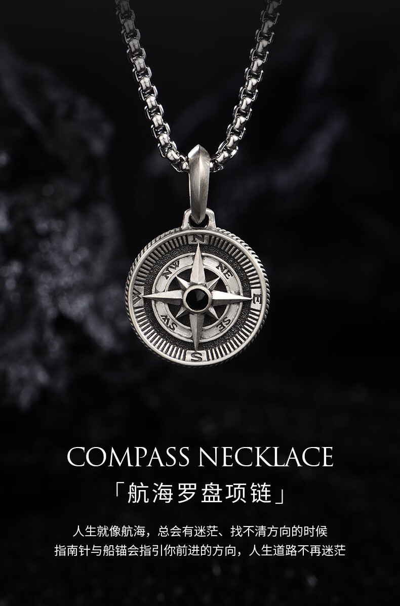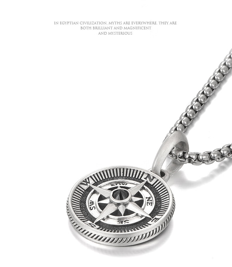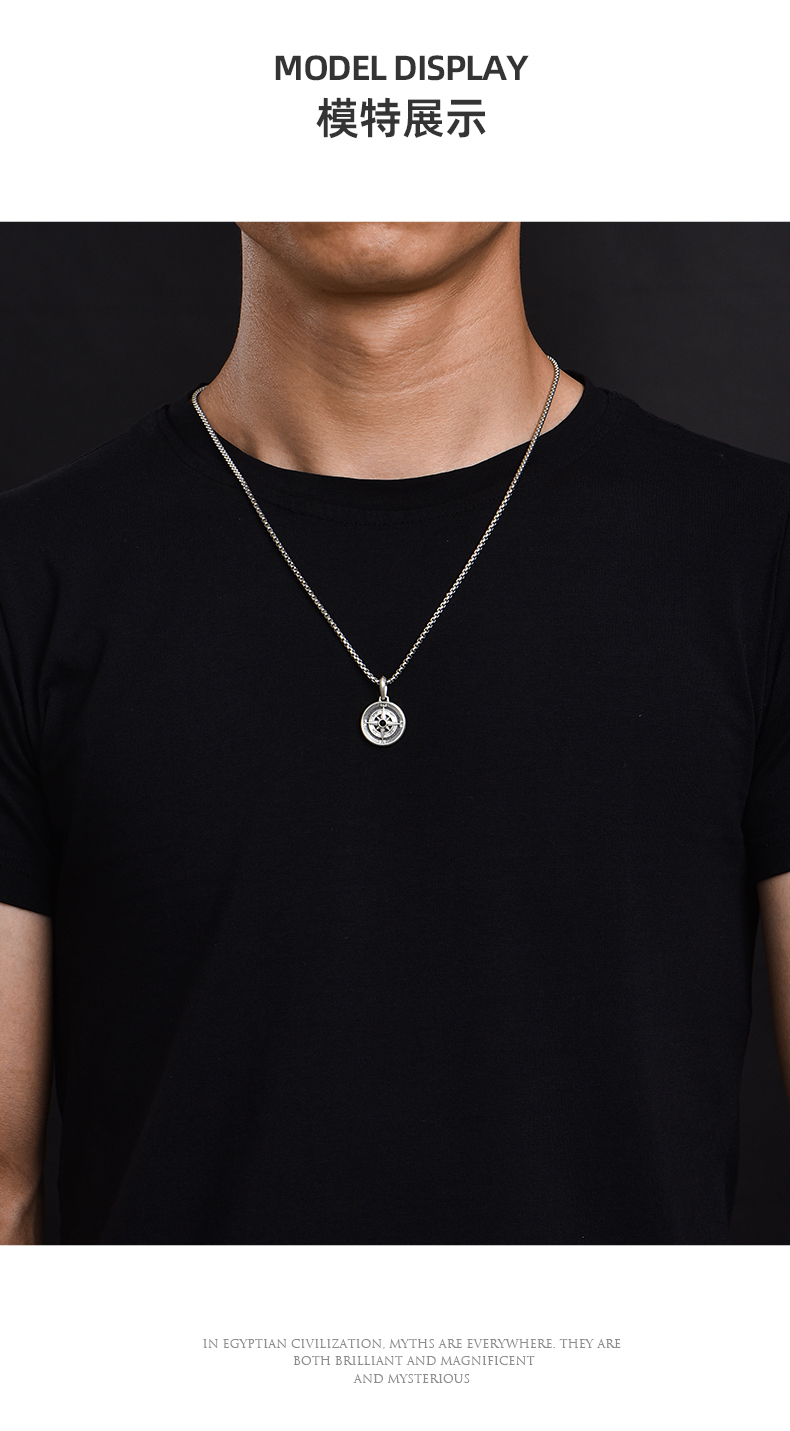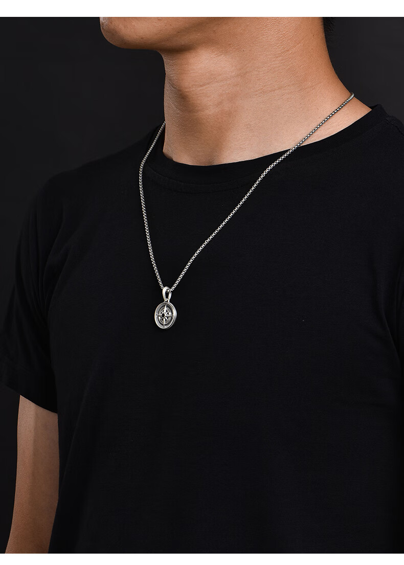 Ji Sifan Light Luxury Compass Silver Necklace Men's Trendy Retro Style Personalized Hip-Hop Pendant Accessories as a Valentine's Day Gift for Your Boyfriend Silver Compass Pendant + Hexagonal Silver Chain 65cm