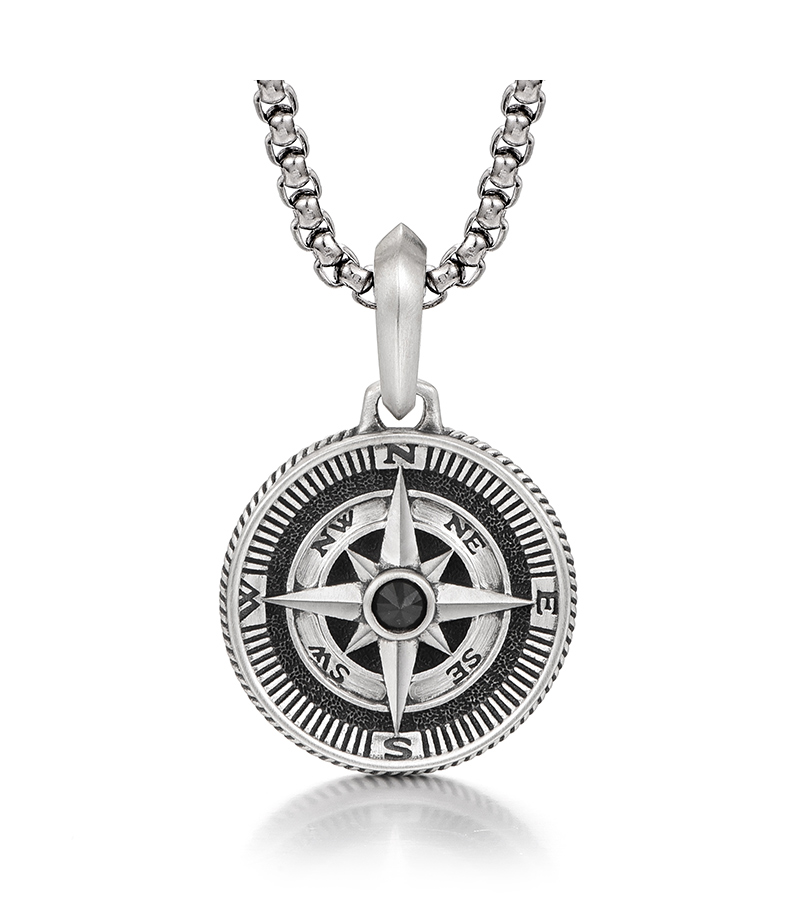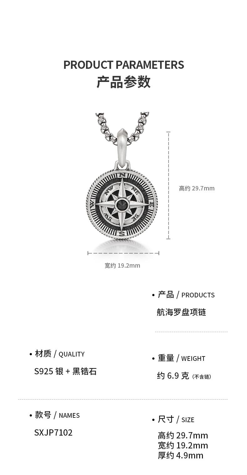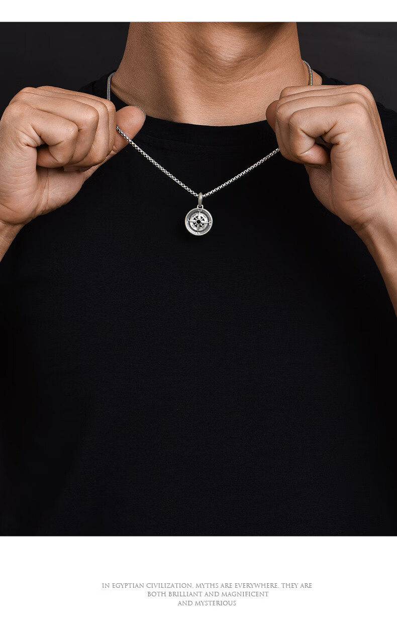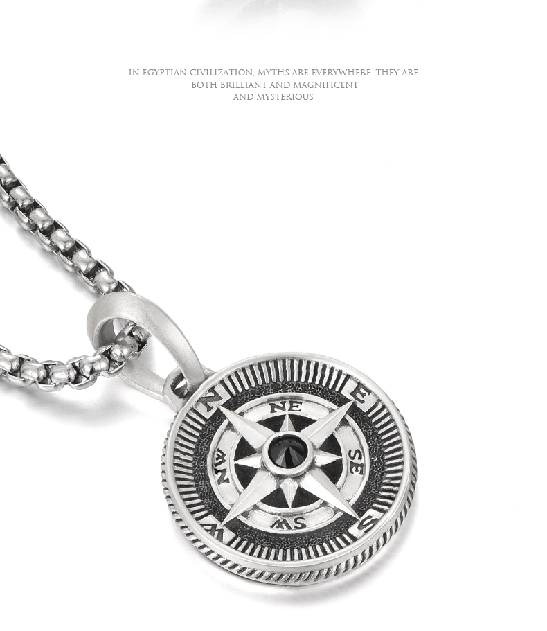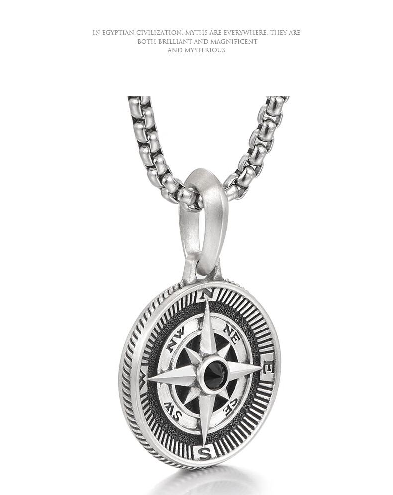 Ji Sifan Light Luxury Compass Silver Necklace Men's Trendy Retro Style Personalized Hip-Hop Pendant Accessories as a Valentine's Day Gift for Your Boyfriend Silver Compass Pendant + Hexagonal Silver Chain 65cm
