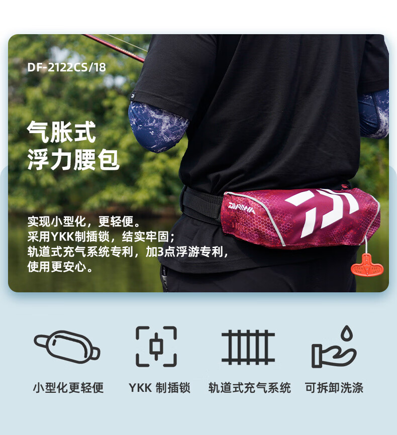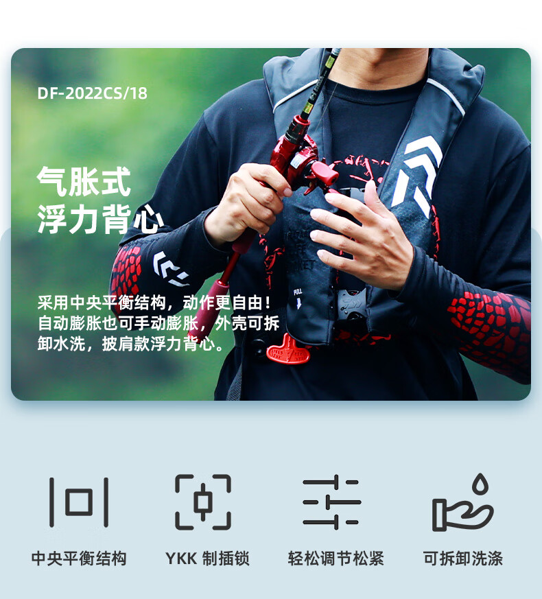 DAIWA 23 new inflatable buoyancy vest/waist bag, automatic inflatable portable life jacket, Luya fishing clothing, black rice color-vest style, one size fits all
