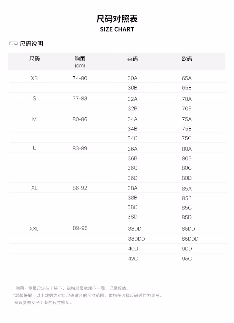 China (cm) 160-165/84-86 165-170 / 88-90 167-172 / 92-96 168-173 / 98-102 170-176 / 106-110