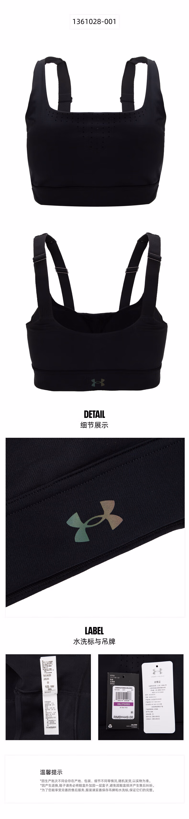 Under Armor Women's Sports Bra 2025 Autumn New Yoga Pilates Running Bra Breathable and Comfortable Sports Bra 1361028-001 XS (74-80CM) XS