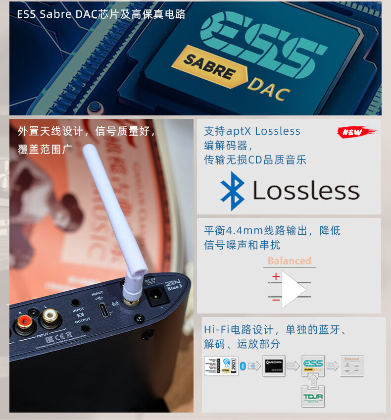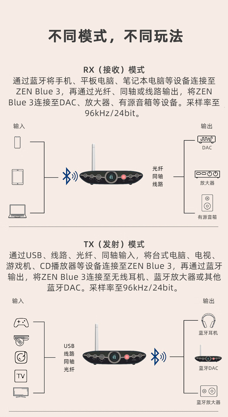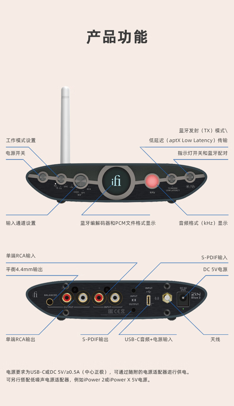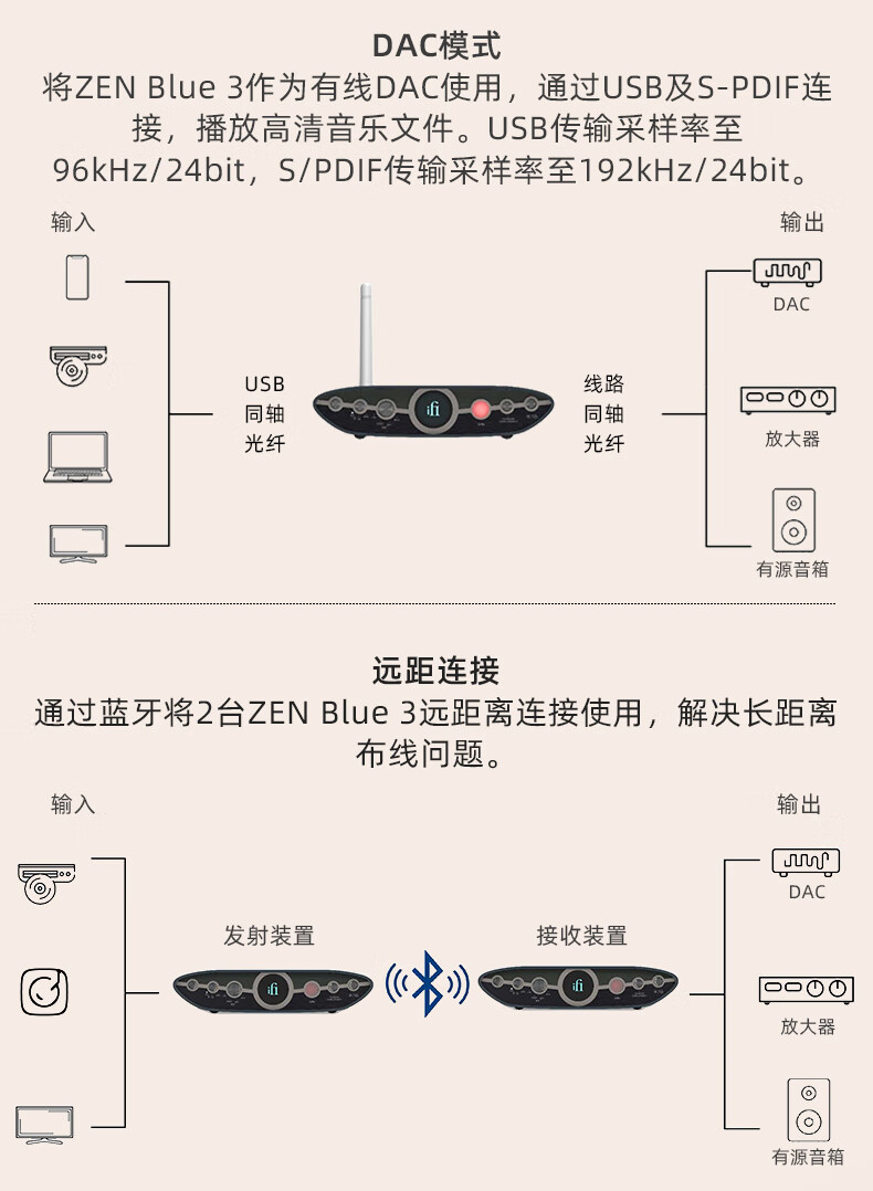 Yuerfa iFi ZEN Blue3 Bluetooth decoder Bluetooth 5.4 HD full format Bluetooth receiver to speaker transmitter adapter two-way codec DAC ZEN Air Blue Bluetooth decoder