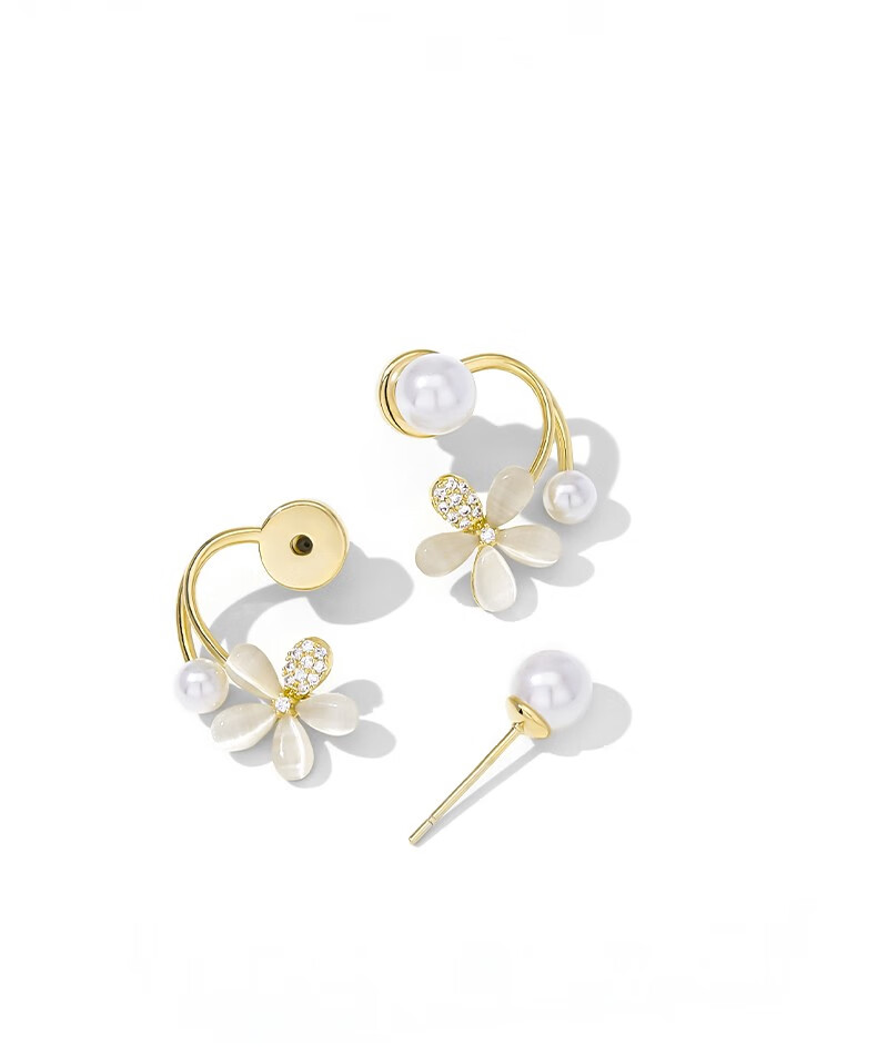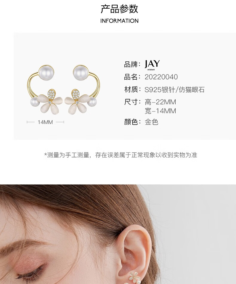 Jay imitation cat's eye stone flower earrings, women's earrings, fashion jewelry, earrings, birthday gifts for girlfriends and besties