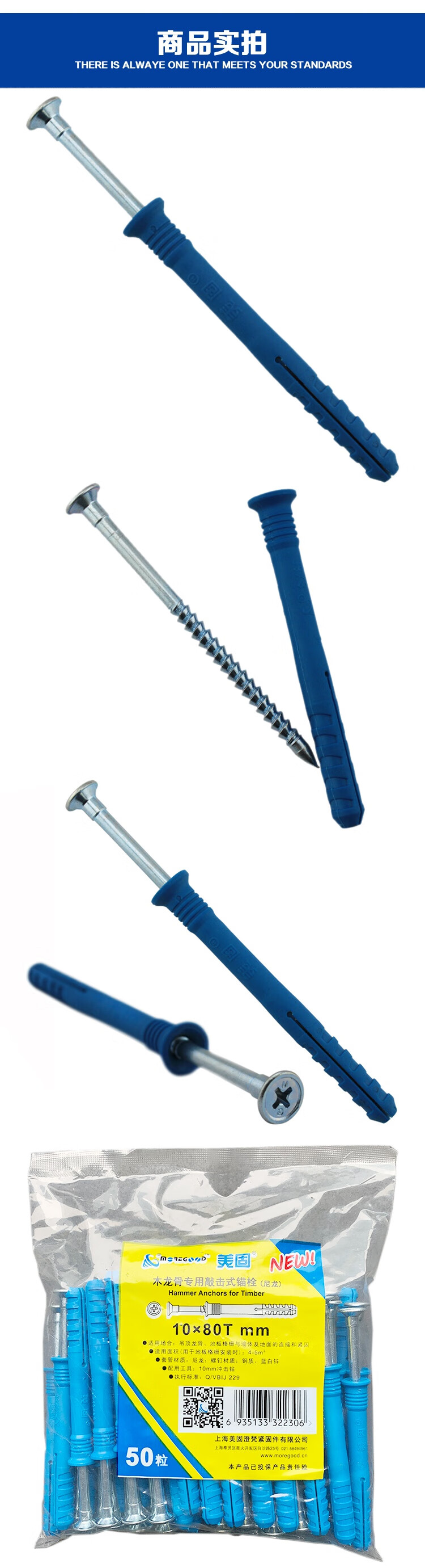 Junmo wood keel percussion anchor keel nail percussion nail expansion screw thickened nylon expansion nail nylon 8*80 US nail 50 pieces/pack