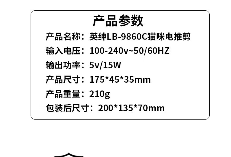 Yingshen pet electric clipper for cats, special foot shaving device, bass trimmer, rechargeable beauty electric clipper for home use, cat electric clipper (2 standard blades)