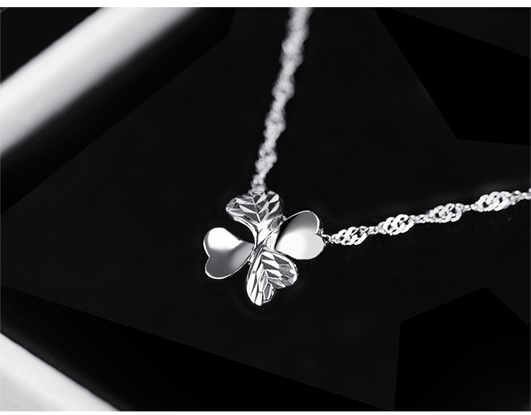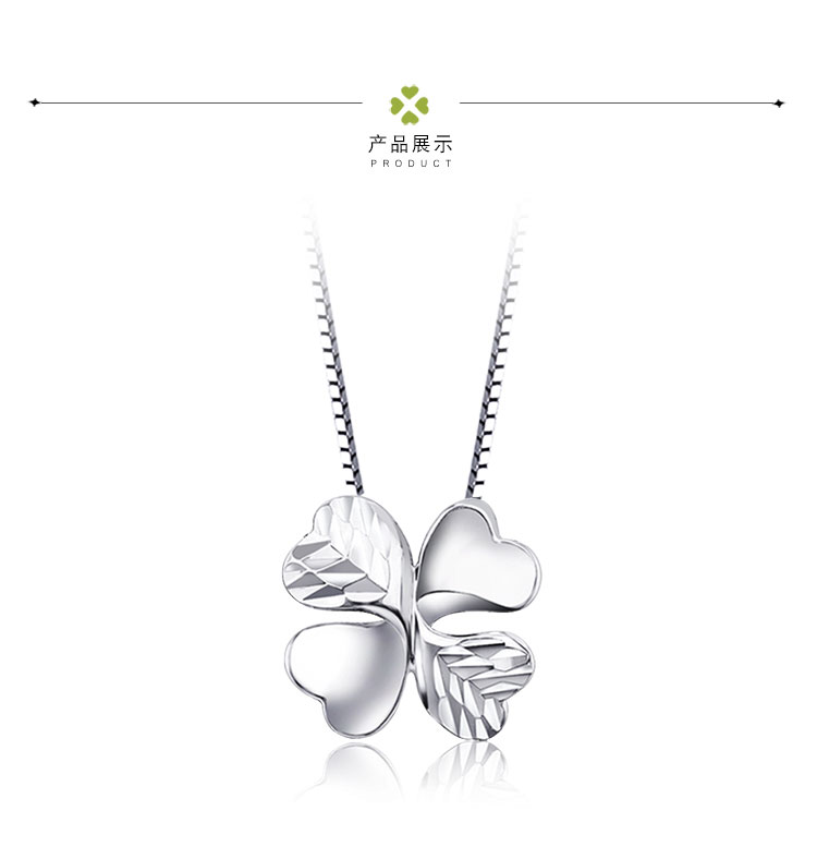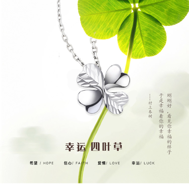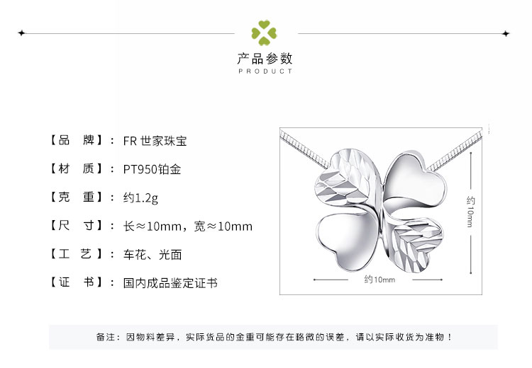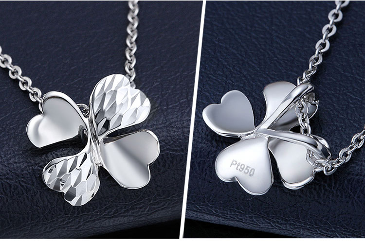 FR Jewelry PT950 Platinum Pendant Platinum Carved Four-leaf Clover Pendant with Silver Necklace Chinese Valentine's Day Gift Ready in Stock