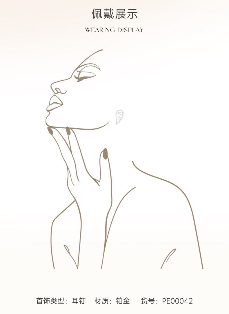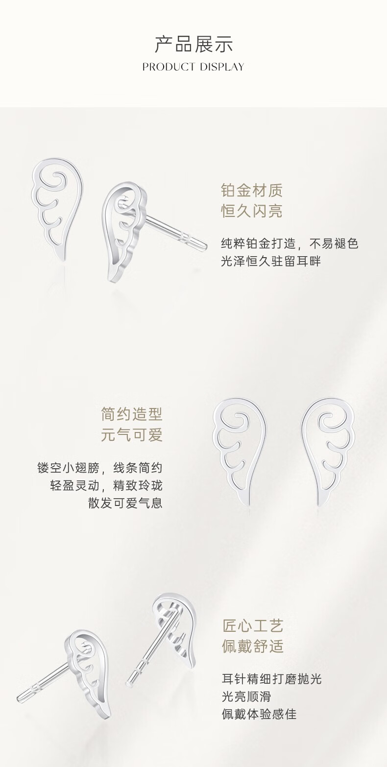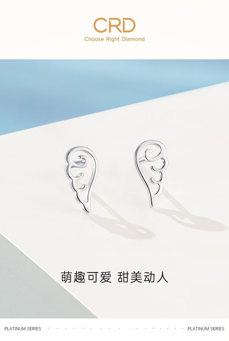 CRD Ke Laidi Spot Sparkling PT950 Platinum Earrings Vitality Hollow Wings Earrings Angel Wings 1.20g