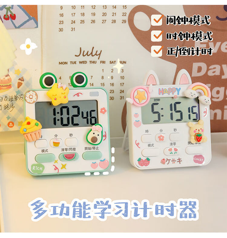 Timer alarm clock dual-purpose student learning children's homework self-discipline reminder time management timer green upgraded model cute stickers
